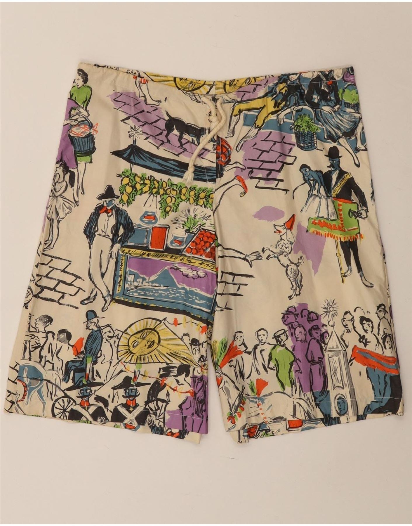 Vintage γυναικείο γραφικό σορτς W33 μεγάλο σε ανοιχτό λευκό