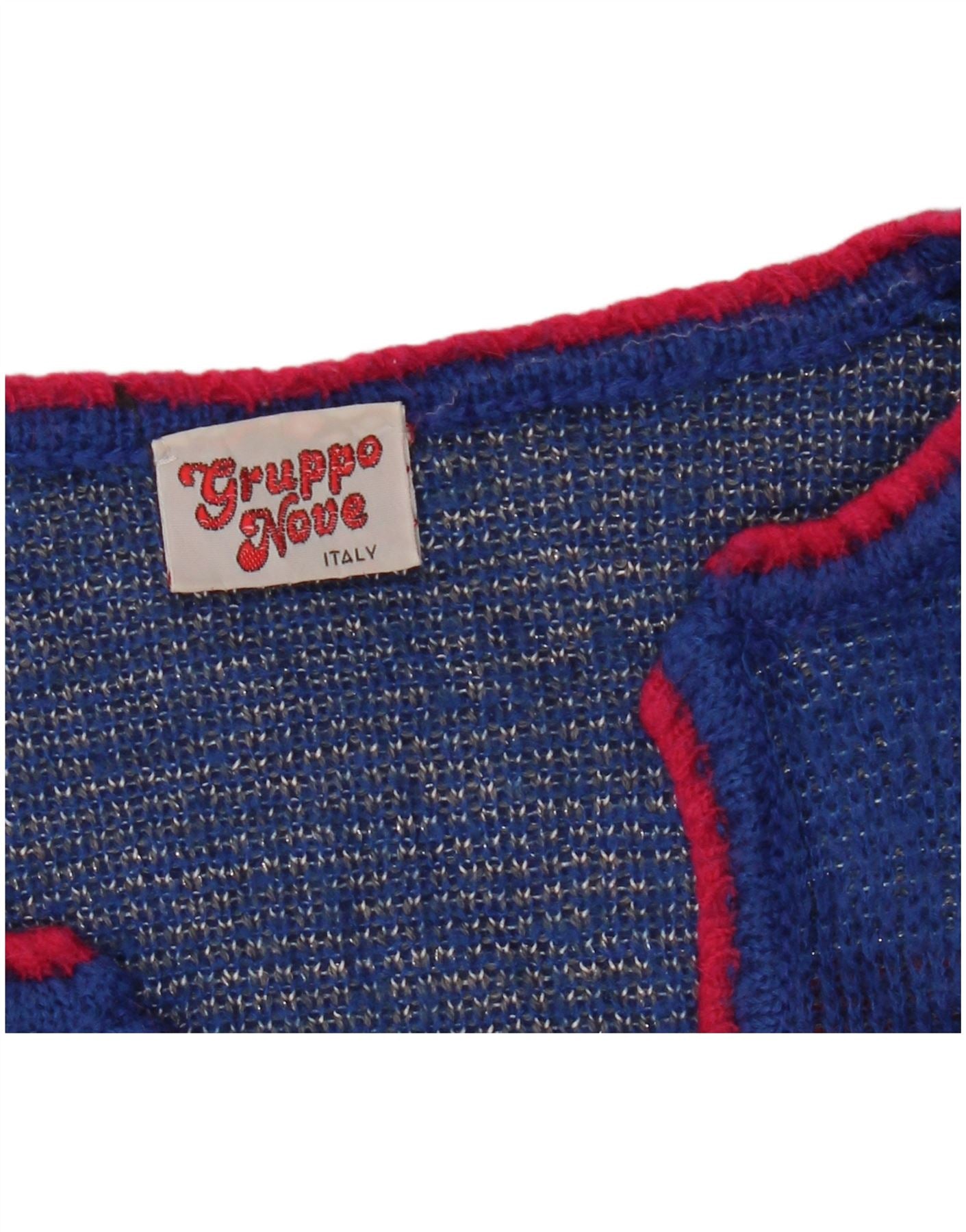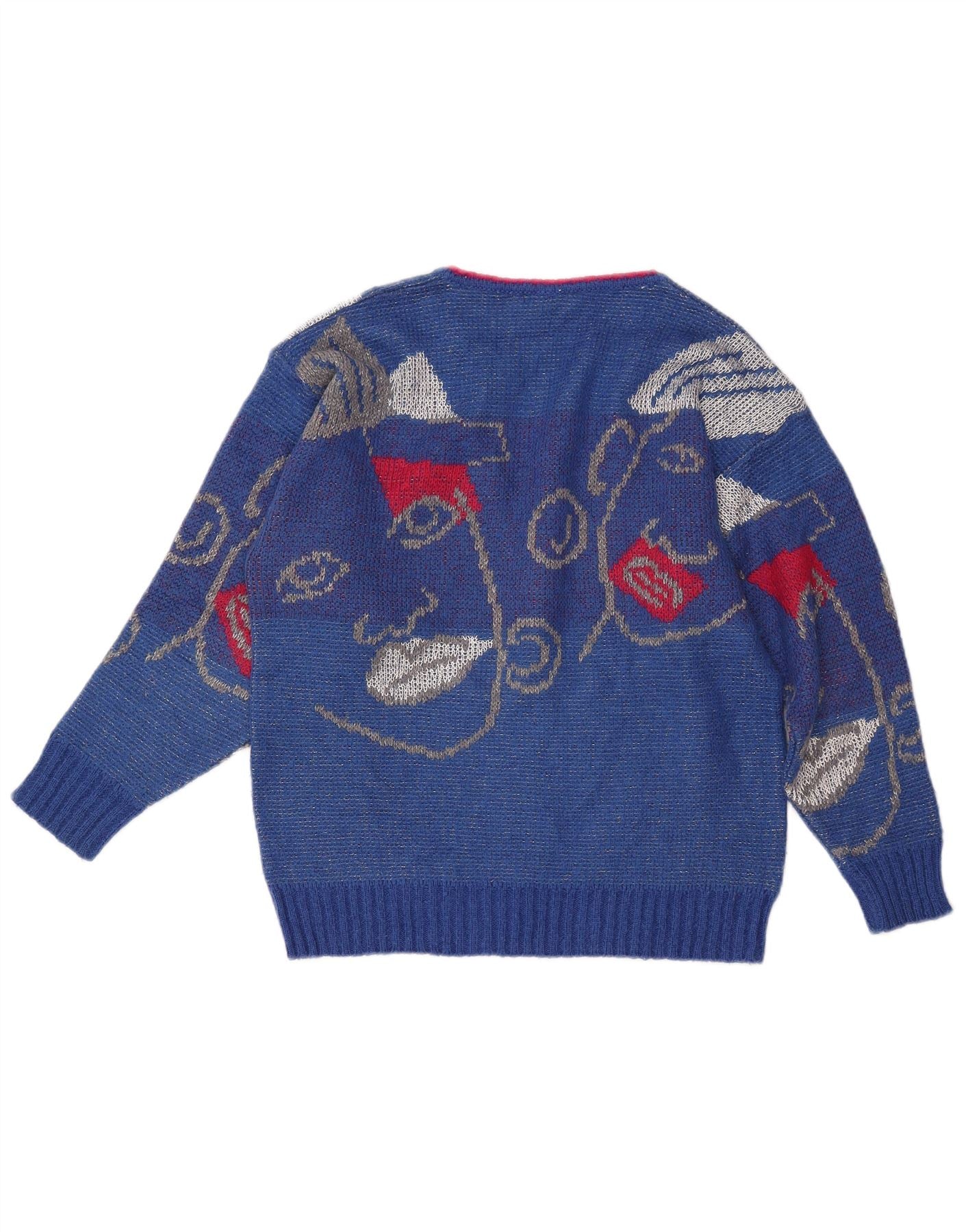 Γυναικείο πουλόβερ με γραφικό V-λαιμόκοψη VINTAGE UK 16 Large Blue