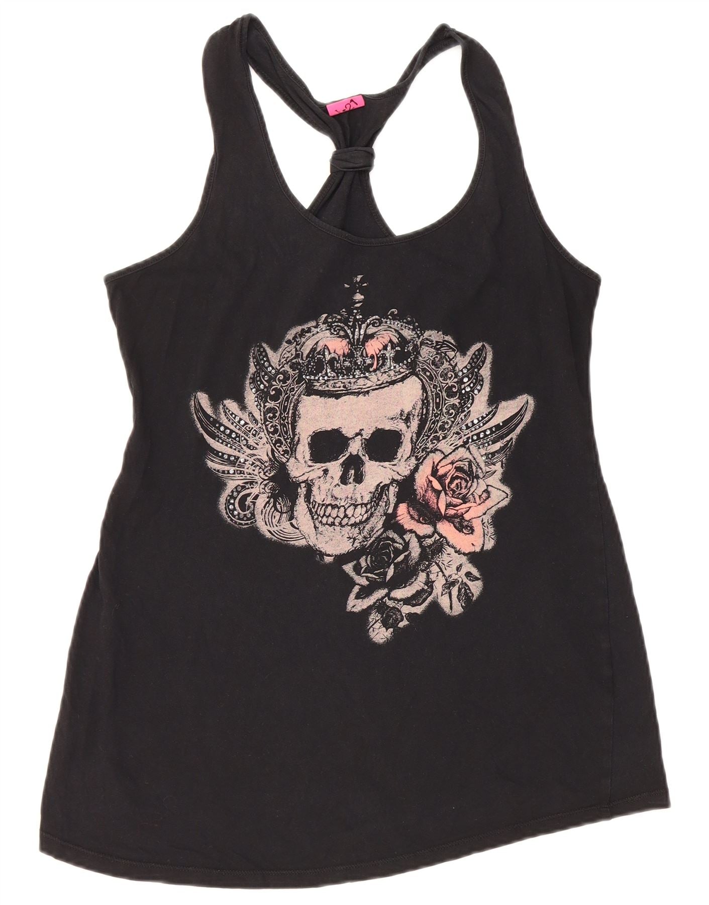 Γυναικείο γραφικό γιλέκο VINTAGE UK 12 μεσαίο μαύρο βαμβακερό