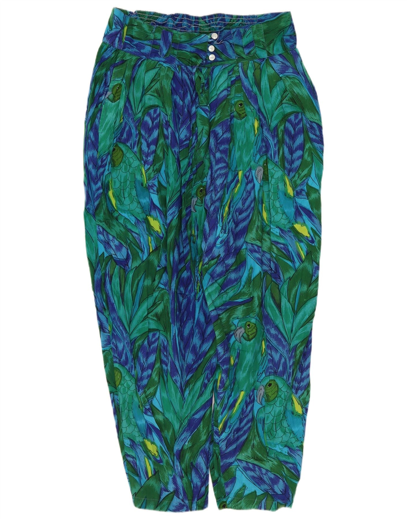 Vintage γυναικείο παντελόνι χαρέμι μεσαίο W28 L22 πράσινο φλοράλ βισκόζη τροπικό