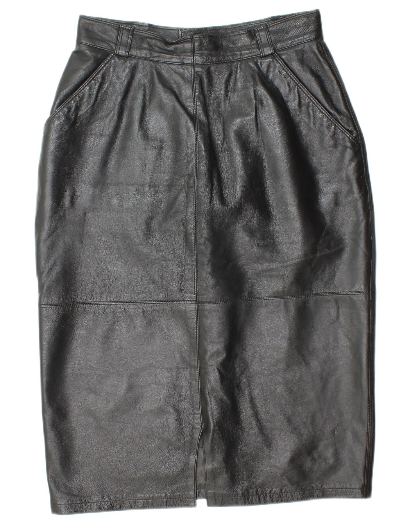 VINTAGE Γυναικεία Ψηλόμεση Δερμάτινη Φούστα IT 44 Medium W26 Μαύρη Δερμάτινη