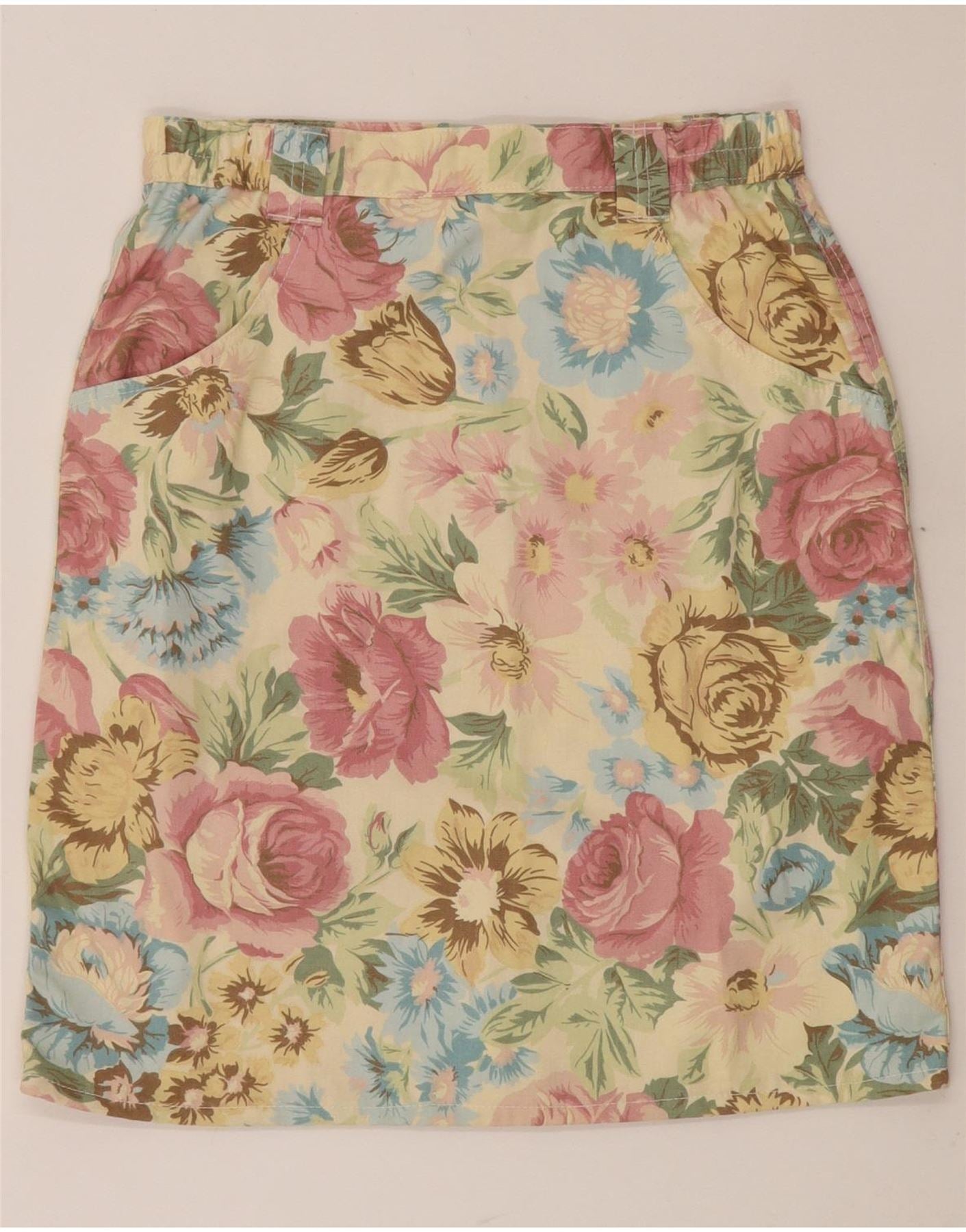 VINTAGE Γυναικεία Ψηλόμεση ίσια Φούστα W30 Μεσαίο Κίτρινο Floral