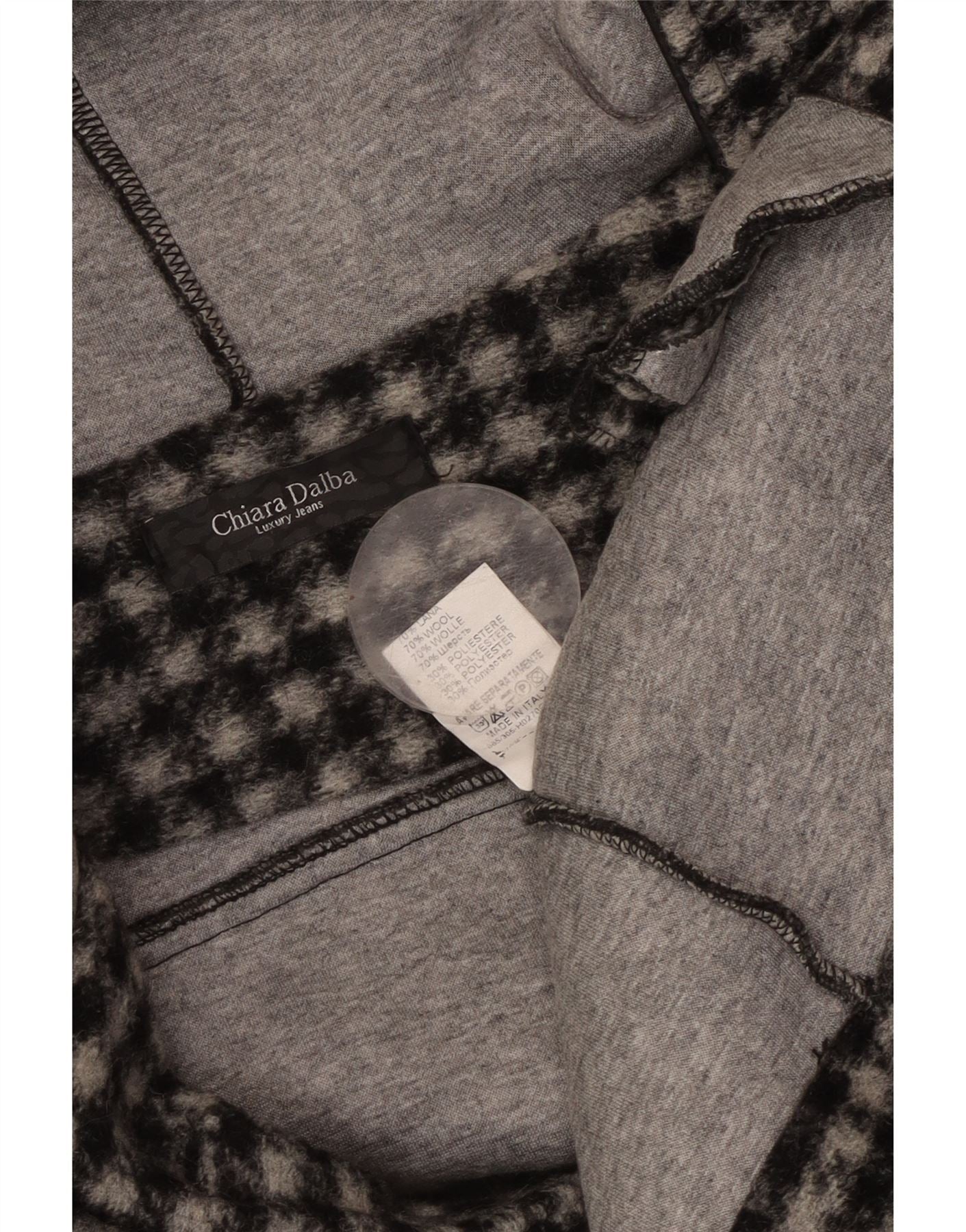 VINTAGE Γυναικείο Bomber Jacket με κουκούλα UK 18 XL Μαύρο καρό μαλλί