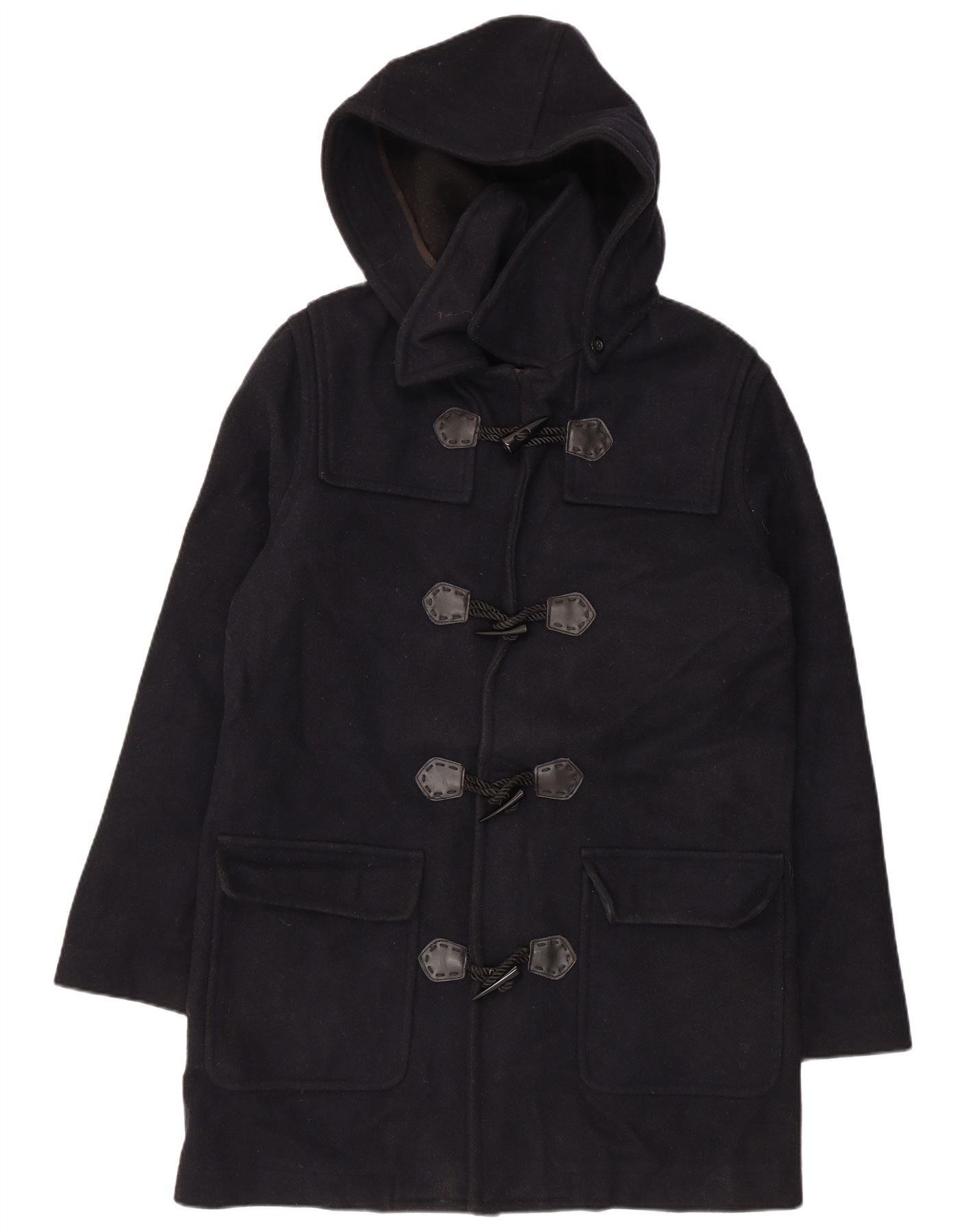 VINTAGE Γυναικείο παλτό Duffle με κουκούλα UK 18 XL Navy Blue Wool