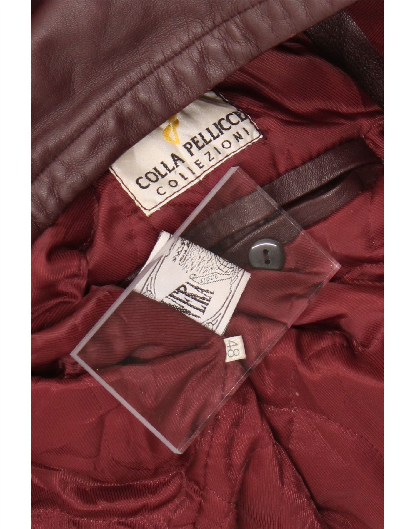 Γυναικείο Δερμάτινο Μπουφάν VINTAGE με κουκούλα IT 48 XL Δερμάτινο μπορντό
