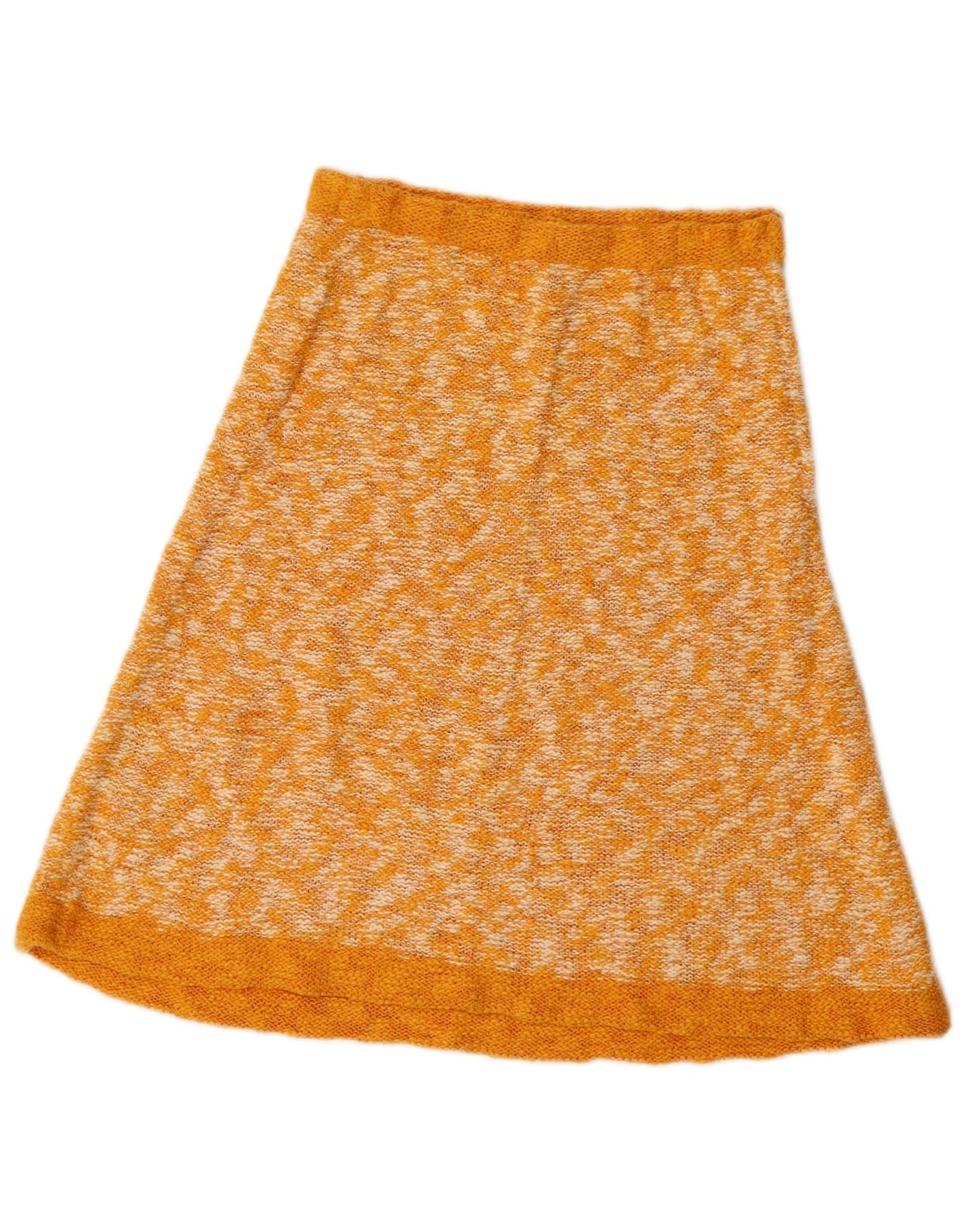 Vintage γυναικεία πλεκτή φούστα σε γραμμή Α W24 XS με κίτρινη φλοκέτα
