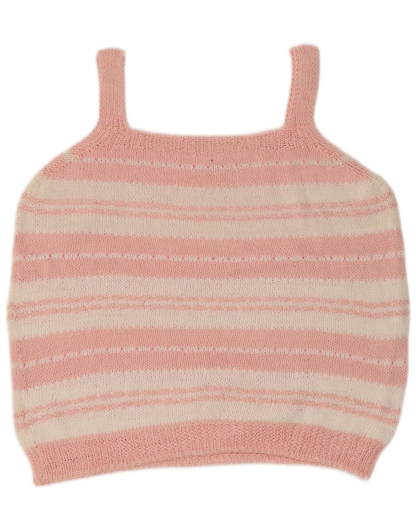 VINTAGE Γυναικείο πλεκτό Cami Top UK 14 Μεγάλο Ροζ Ριγέ