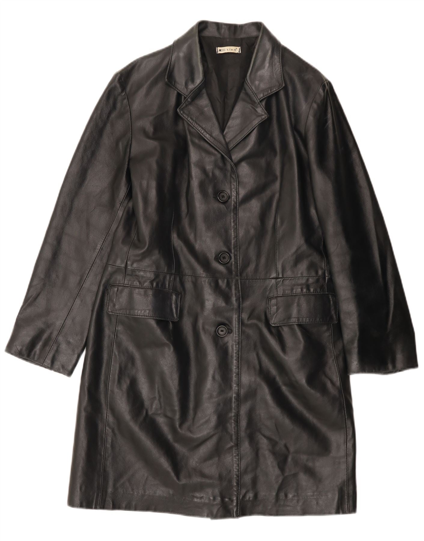 VINTAGE Γυναικείο Δερμάτινο Παλτό IT 46 Μεγάλο Δερμάτινο Μαύρο