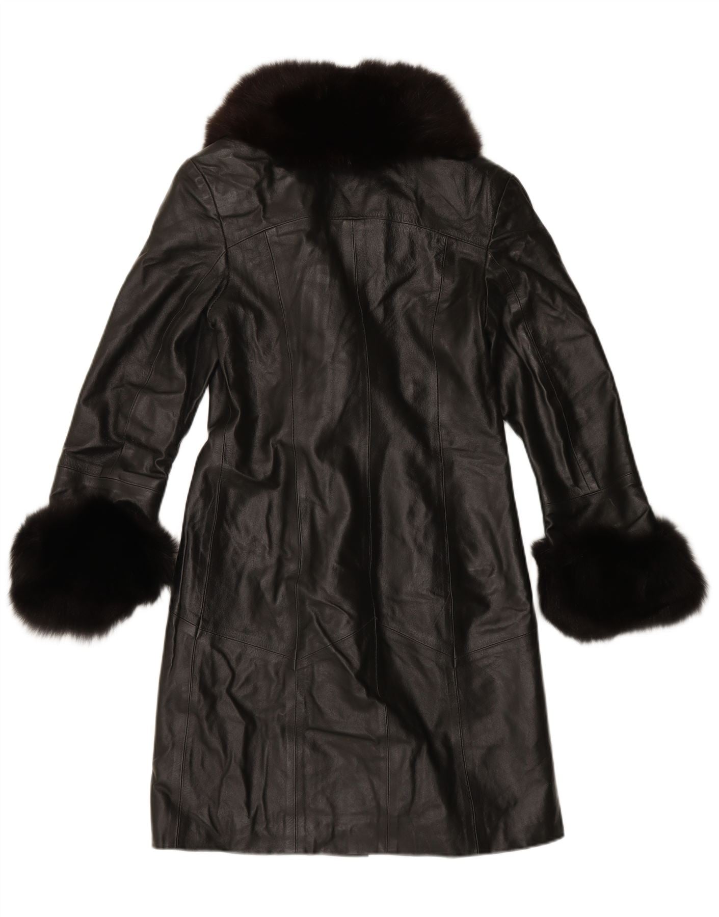 VINTAGE Γυναικείο Δερμάτινο Παλτό IT 46 Μεγάλο Δερμάτινο Μαύρο