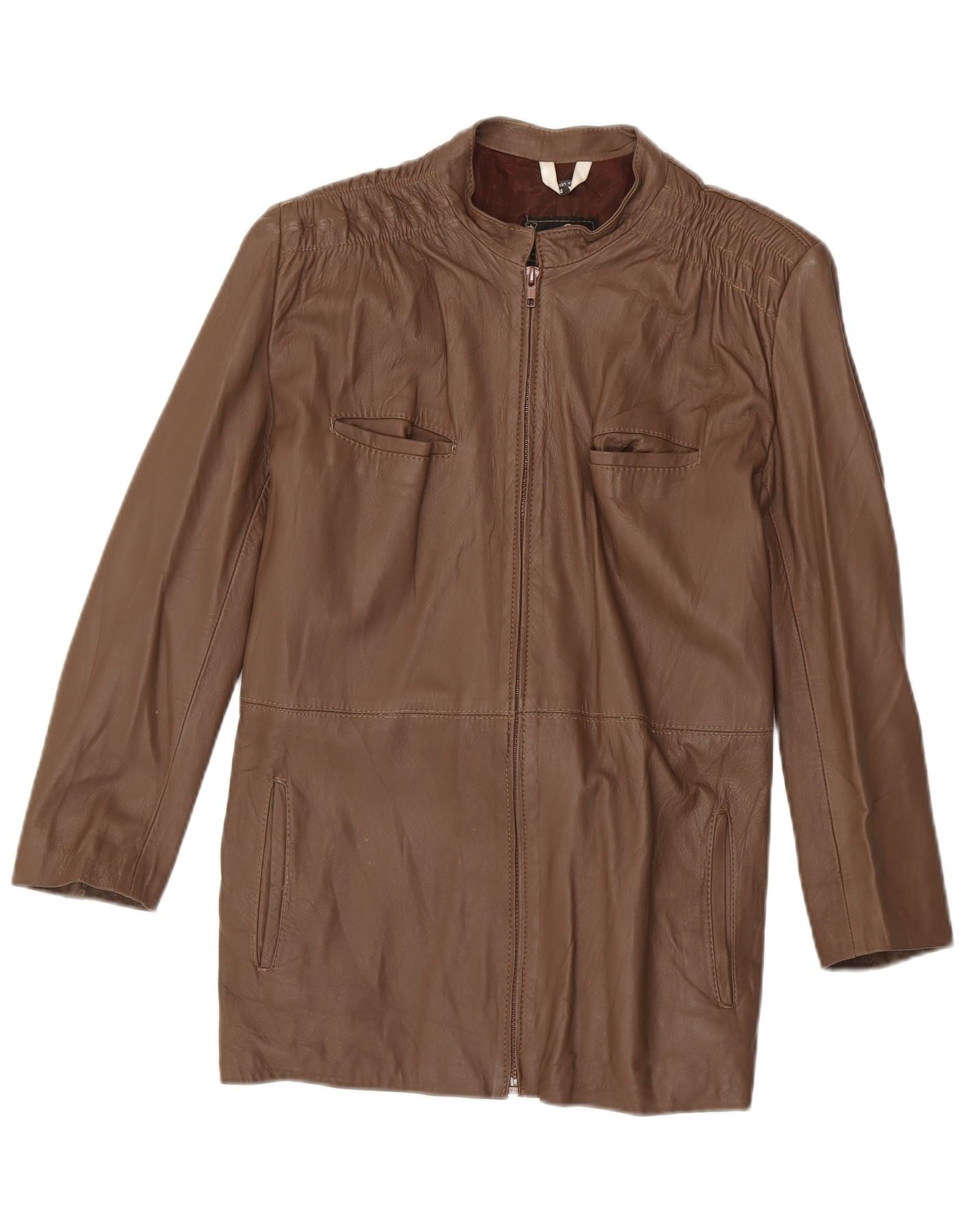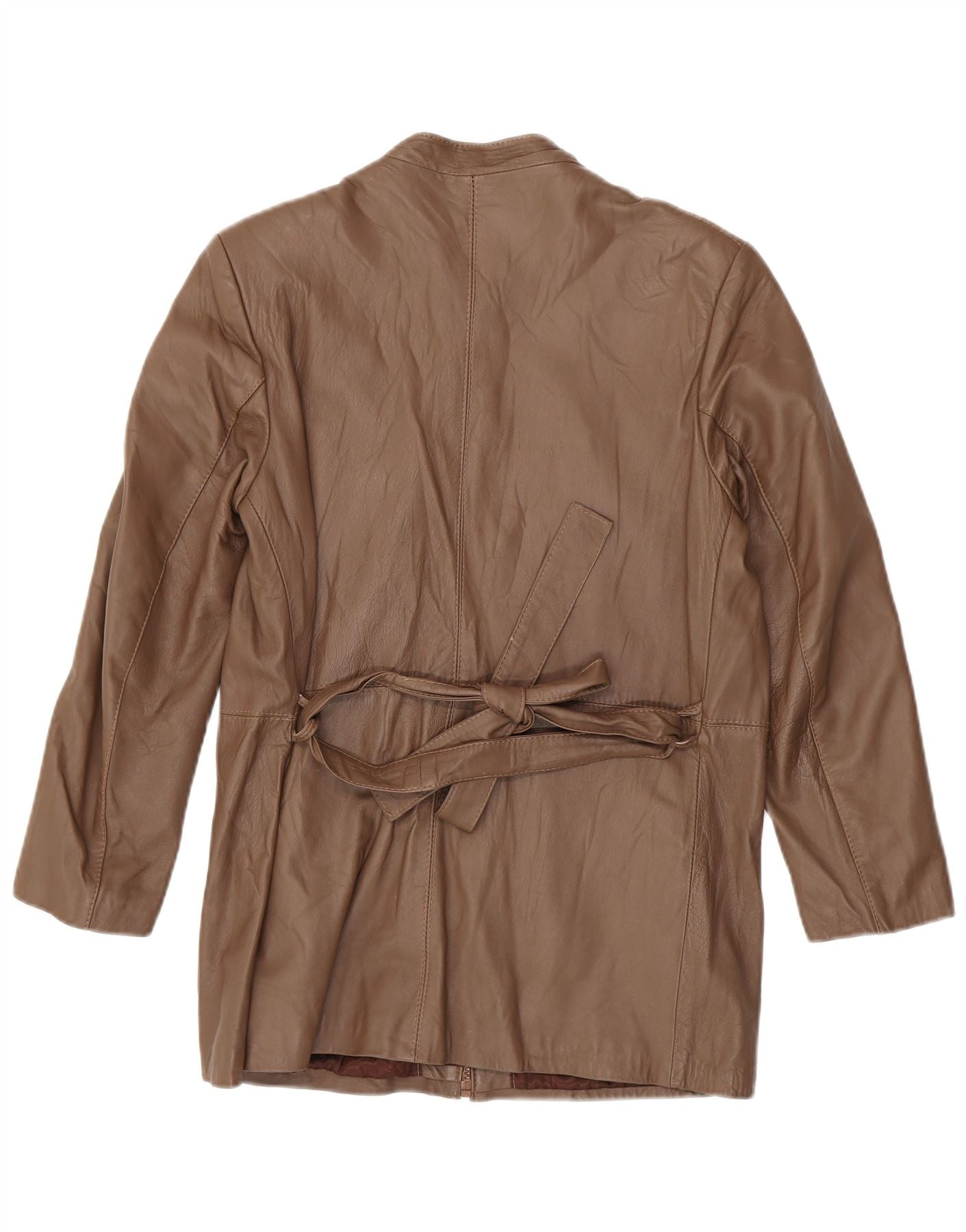 Vintage Γυναικείο Δερμάτινο Παλτό UK 14 Δερμάτινο Μεσαίο Καφέ