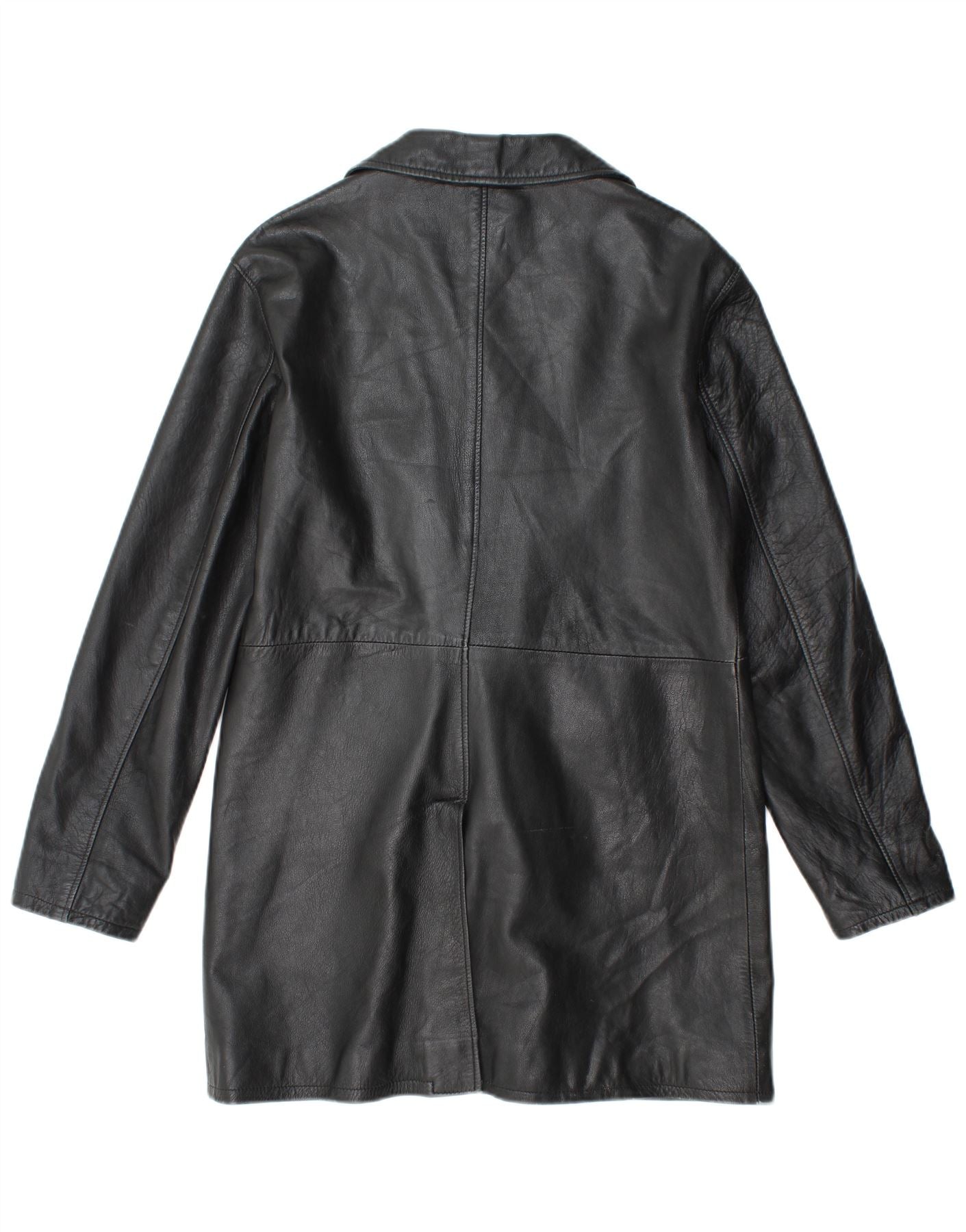 VINTAGE Γυναικείο Δερμάτινο Παλτό UK 18 XL Μαύρο Δερμάτινο