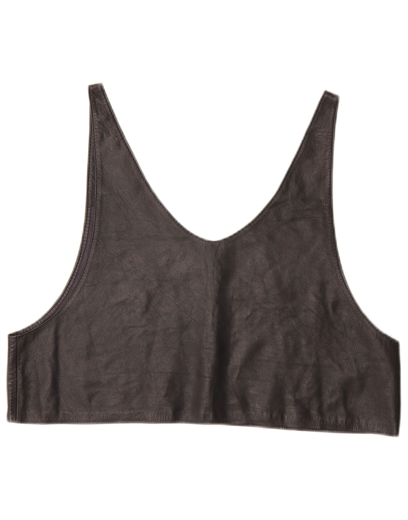 VINTAGE Γυναικείο Δερμάτινο Crop Top UK 12 Medium Black