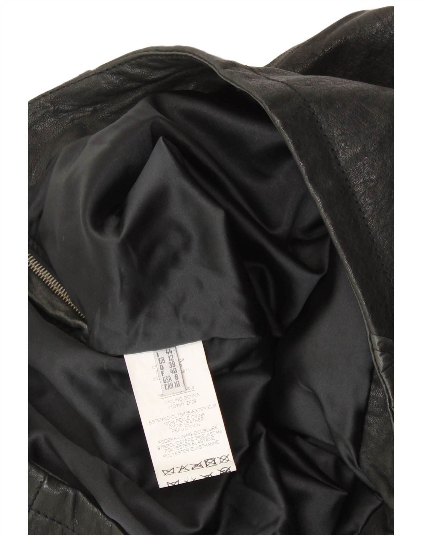 VINTAGE Γυναικεία Δερμάτινη Φούστα UK 12 Medium W30 Μαύρο Patchwork Δερμάτινο
