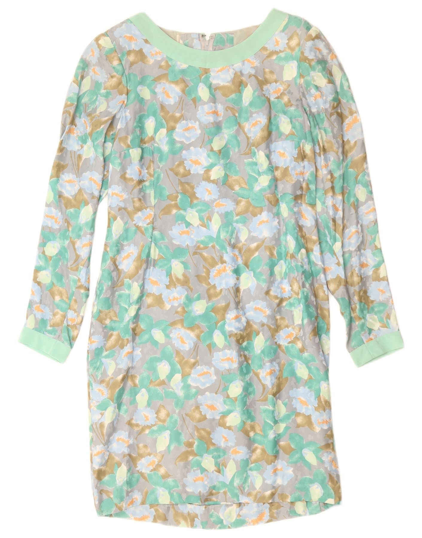 Vintage γυναικείο μακρυμάνικο φόρεμα UK 12 Μεσαίο πράσινο φλοράλ