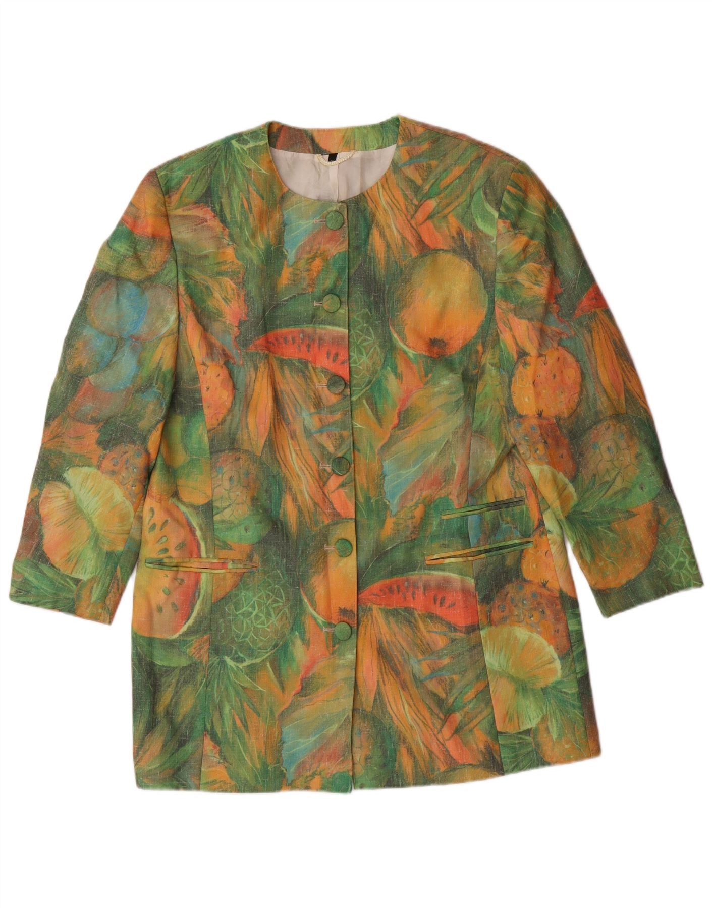 VINTAGE Γυναικείο Longline Abstract Pattern Μπουφάν σακάκι EU 42 Large Green