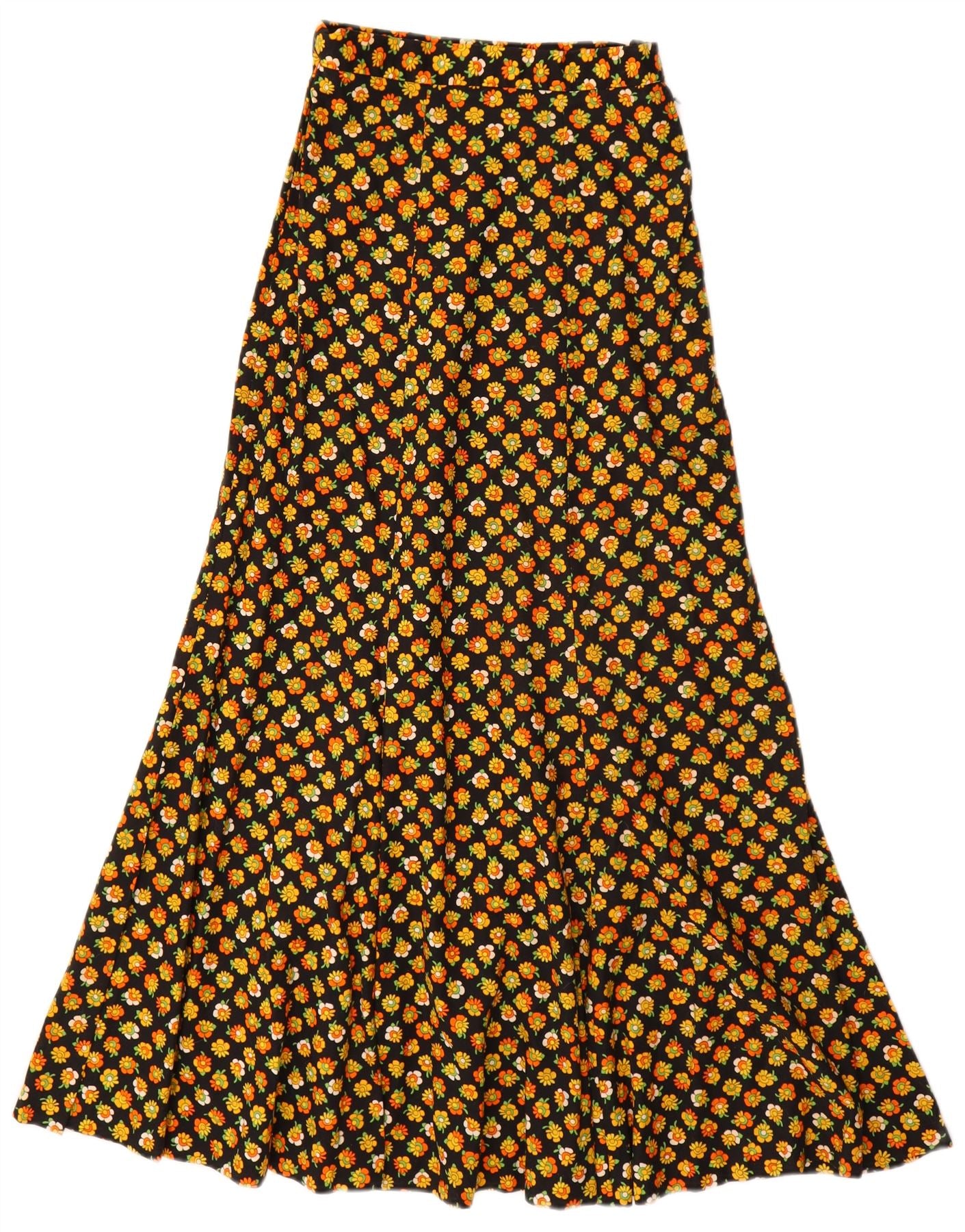 VINTAGE Γυναικεία Maxi A-Line φούστα EU 34 2XS W24 Μαύρη φλοράλ βαμβακερή
