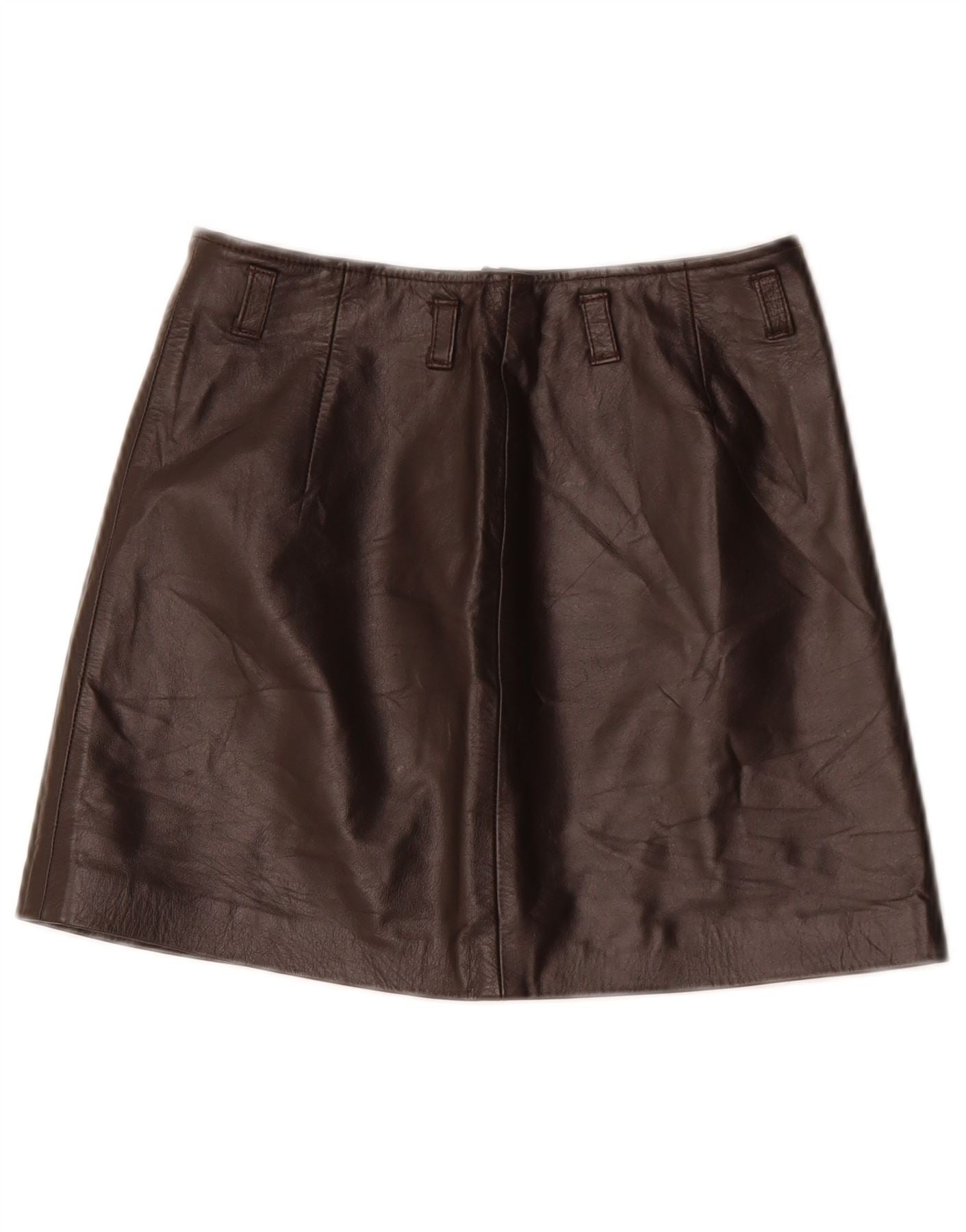 Vintage Γυναικεία Μίνι Δερμάτινη Φούστα IT 40 Small W26 Καφέ Δερμάτινη