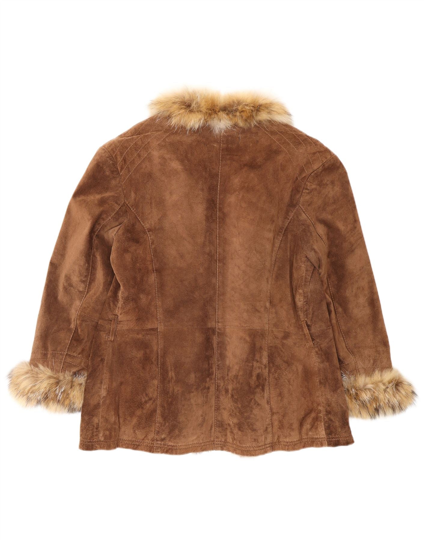 VINTAGE Γυναικείο Ανοιχτό Σουέντ Μπουφάν IT 46 Μεγάλο Καφέ Δερμάτινο