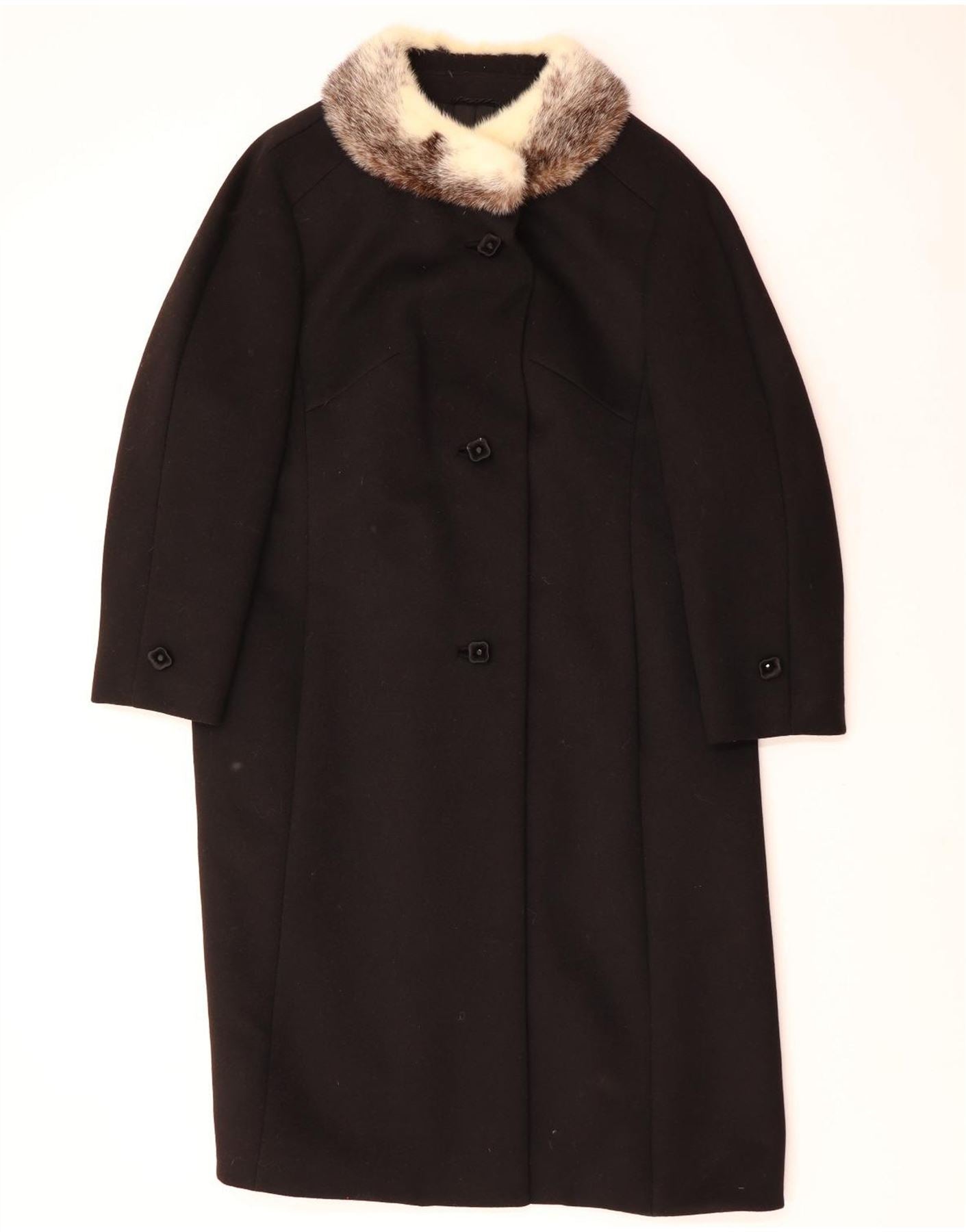 VINTAGE Γυναικείο Παλτό UK 14 Large Black Wool