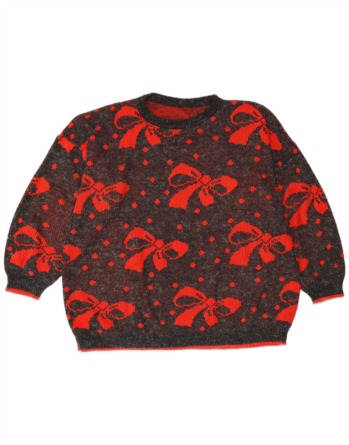 VINTAGE Γυναικείο πουλόβερ με λαιμόκοψη μεγάλου μεγέθους UK 22 3XL γκρι πουά