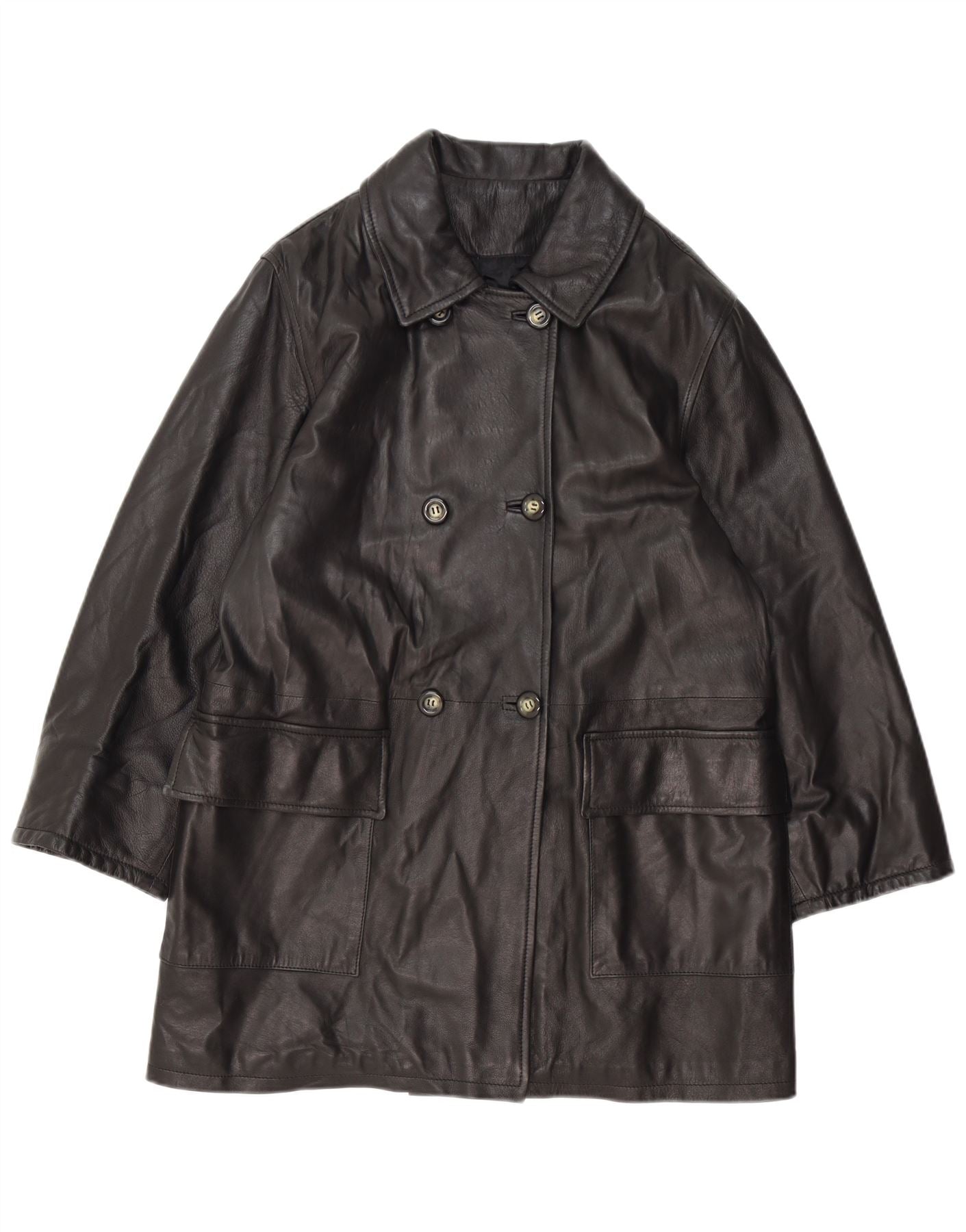 - Περιγραφή AI: Αυτό το ανδρικό παλτό με διπλό στήθος De Frino είναι φτιαγμένο από πλούσιο μαύρο δέρμα. Διαθέτει κλασική λαιμόκοψη με γιακά και κλείσιμο με κουμπί. Τα μακριά μανίκια και η κανονική εφαρμογή προσφέρουν μια άνετη σιλουέτα. Οι πρακτικές τσέπες patch προσθέτουν λειτουργικές λεπτομέρειες. Αυτό το παλτό με επένδυση προσφέρει μια διαχρονική, εκλεπτυσμένη εμφάνιση.