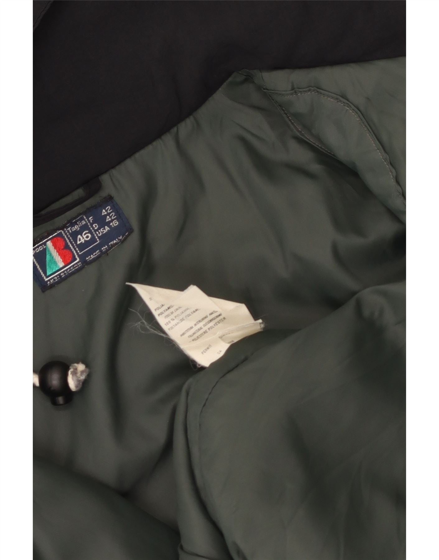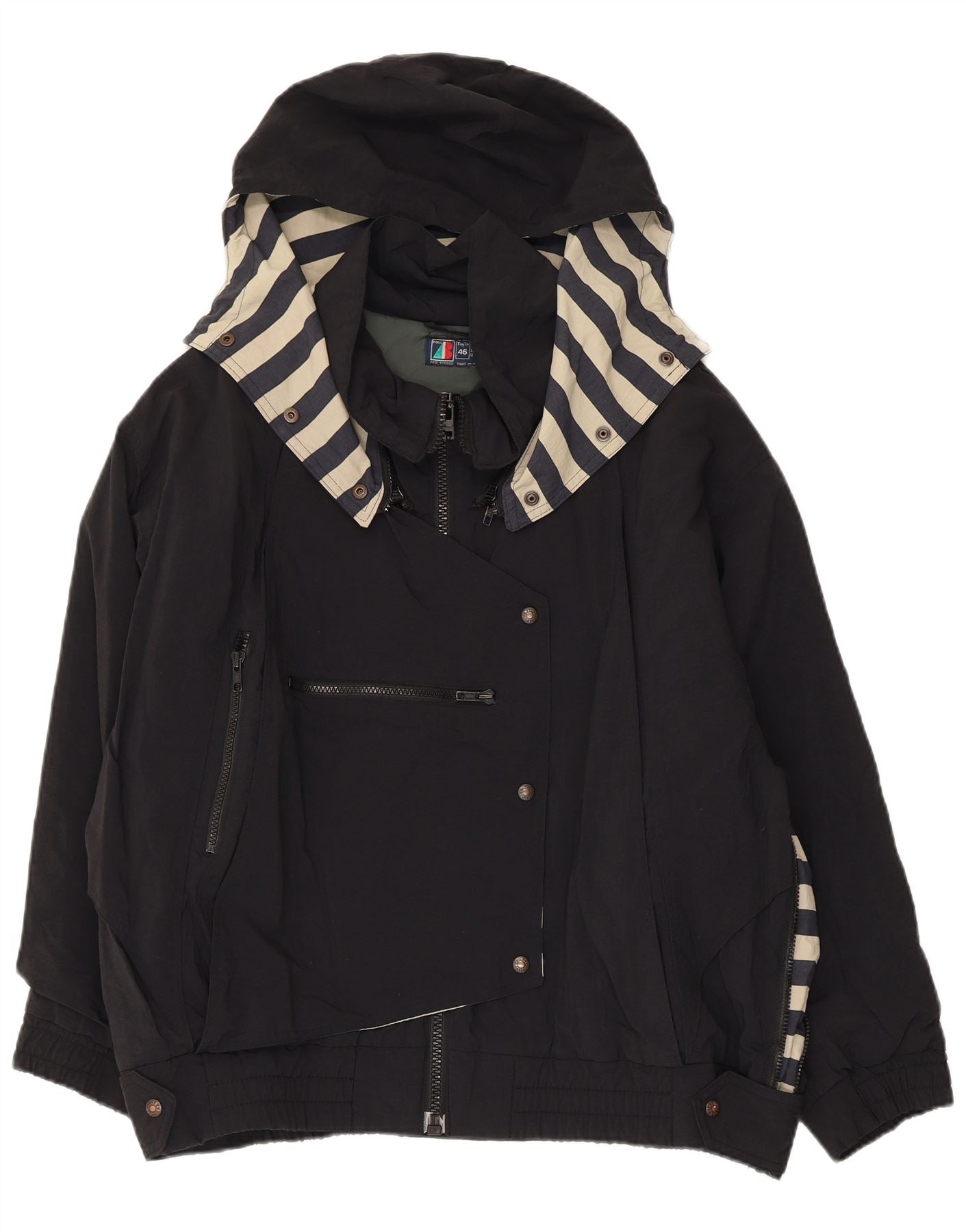 VINTAGE Γυναικείο Μπουφάν με κουκούλα αντιανεμικό IT 46 μεγάλο μαύρο νάιλον