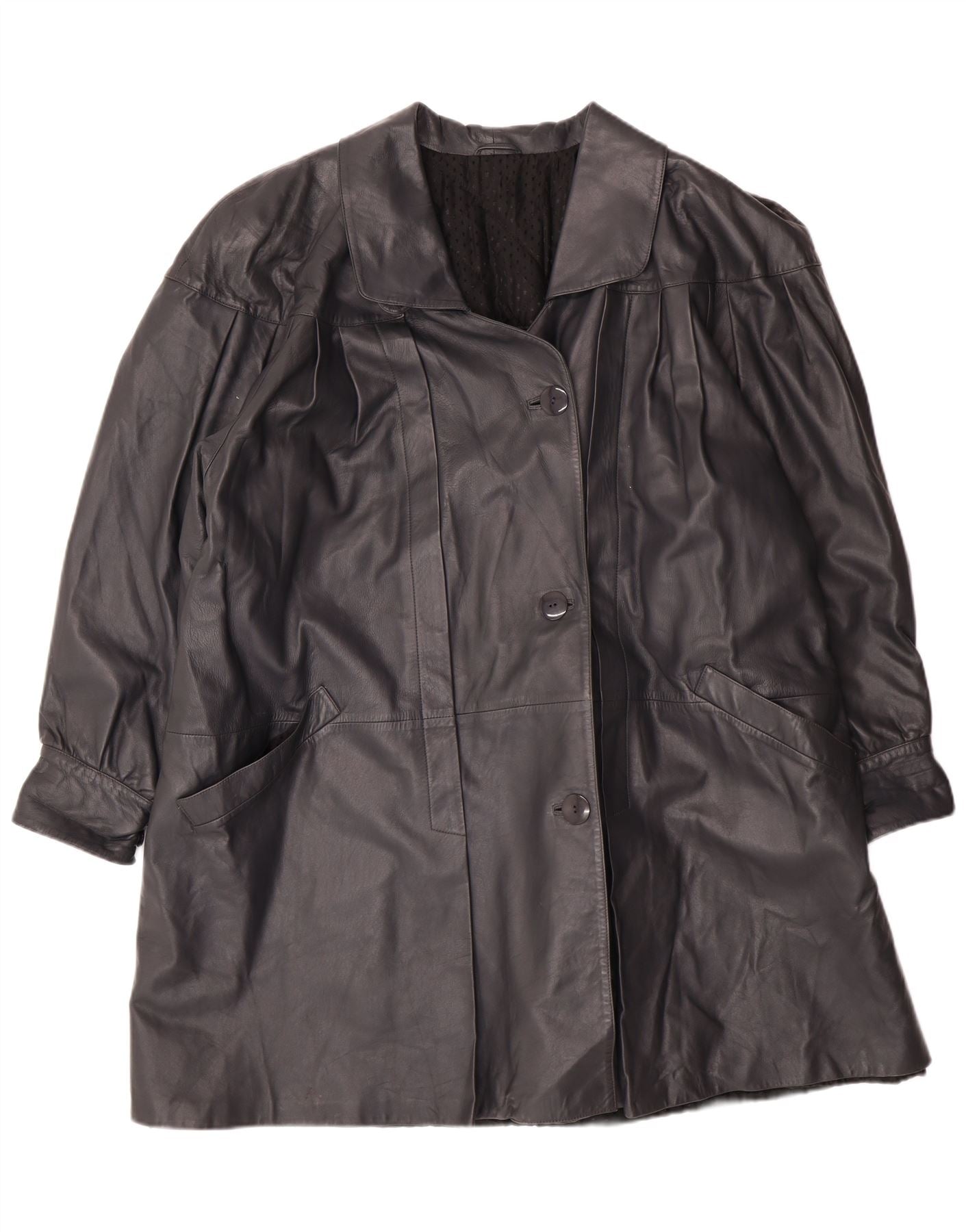 Vintage Γυναικείο Oversized Δερμάτινο Παλτό IT 44 Medium Black Leather Classic