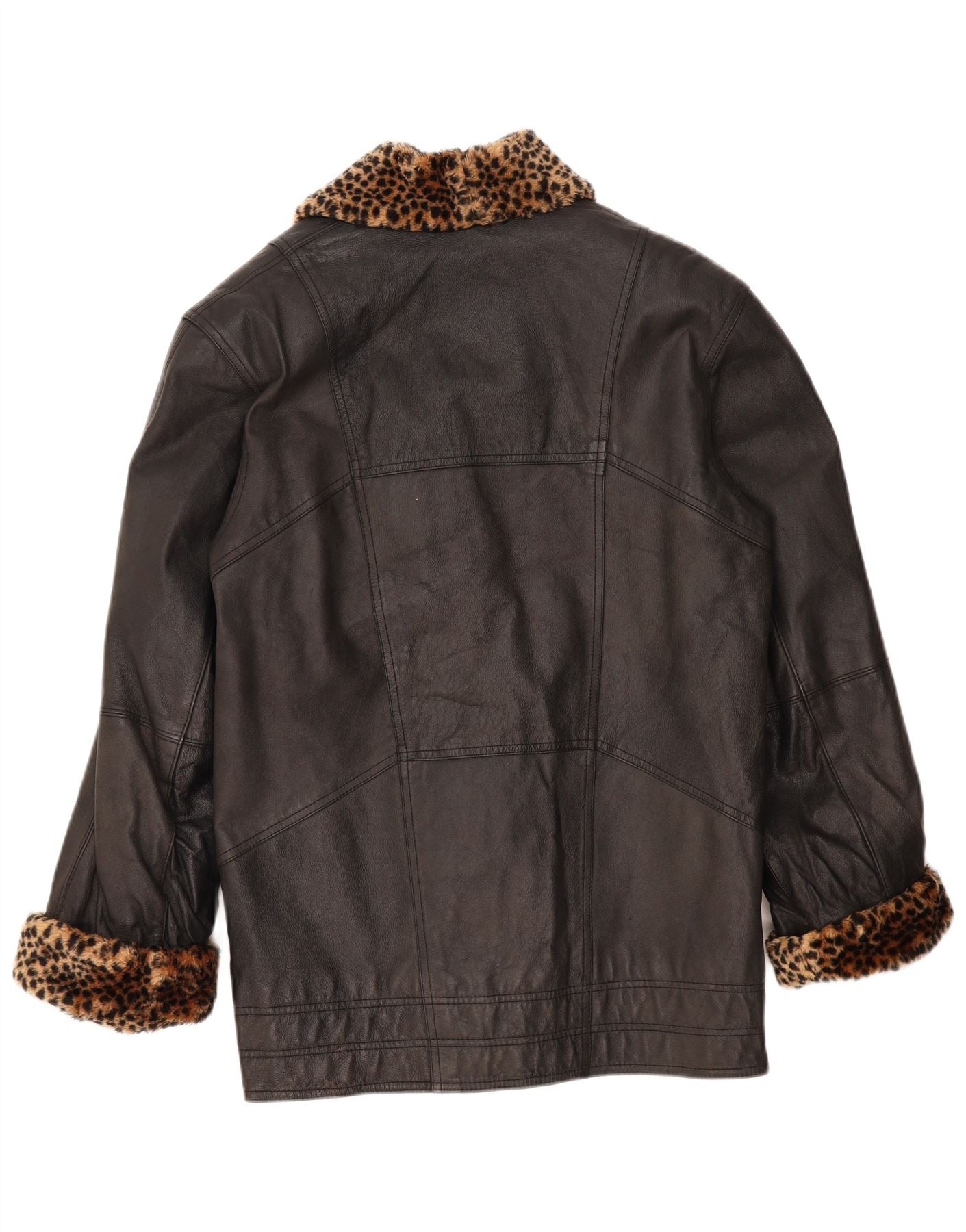VINTAGE Γυναικείο δερμάτινο παλτό UK 10 Small Black Animal Print