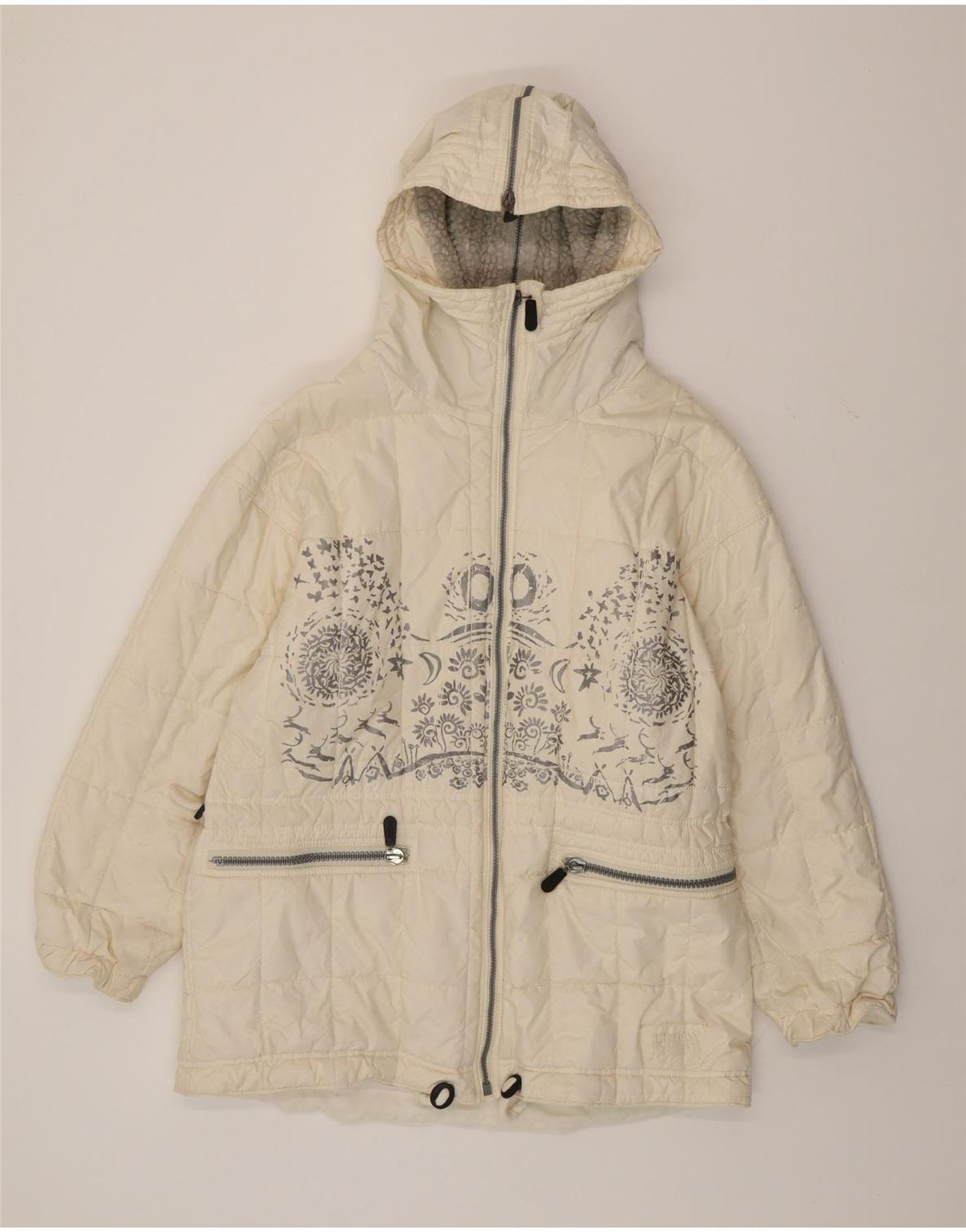 Vintage γυναικείο υπερμεγέθη παλτό UK 10 Small White Paisley Polyester