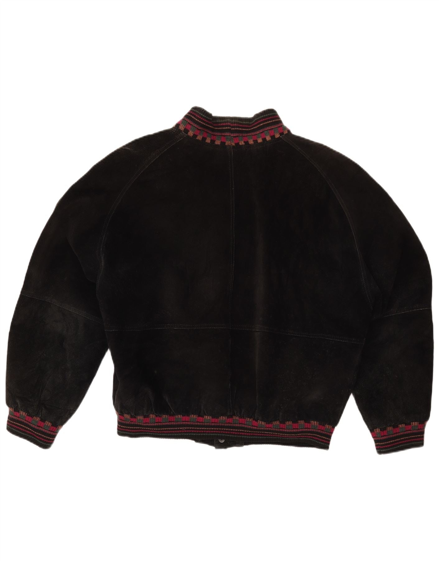 VINTAGE Γυναικείο Suede Jacket UK 18 XL Μαύρο γεωμετρικό δέρμα