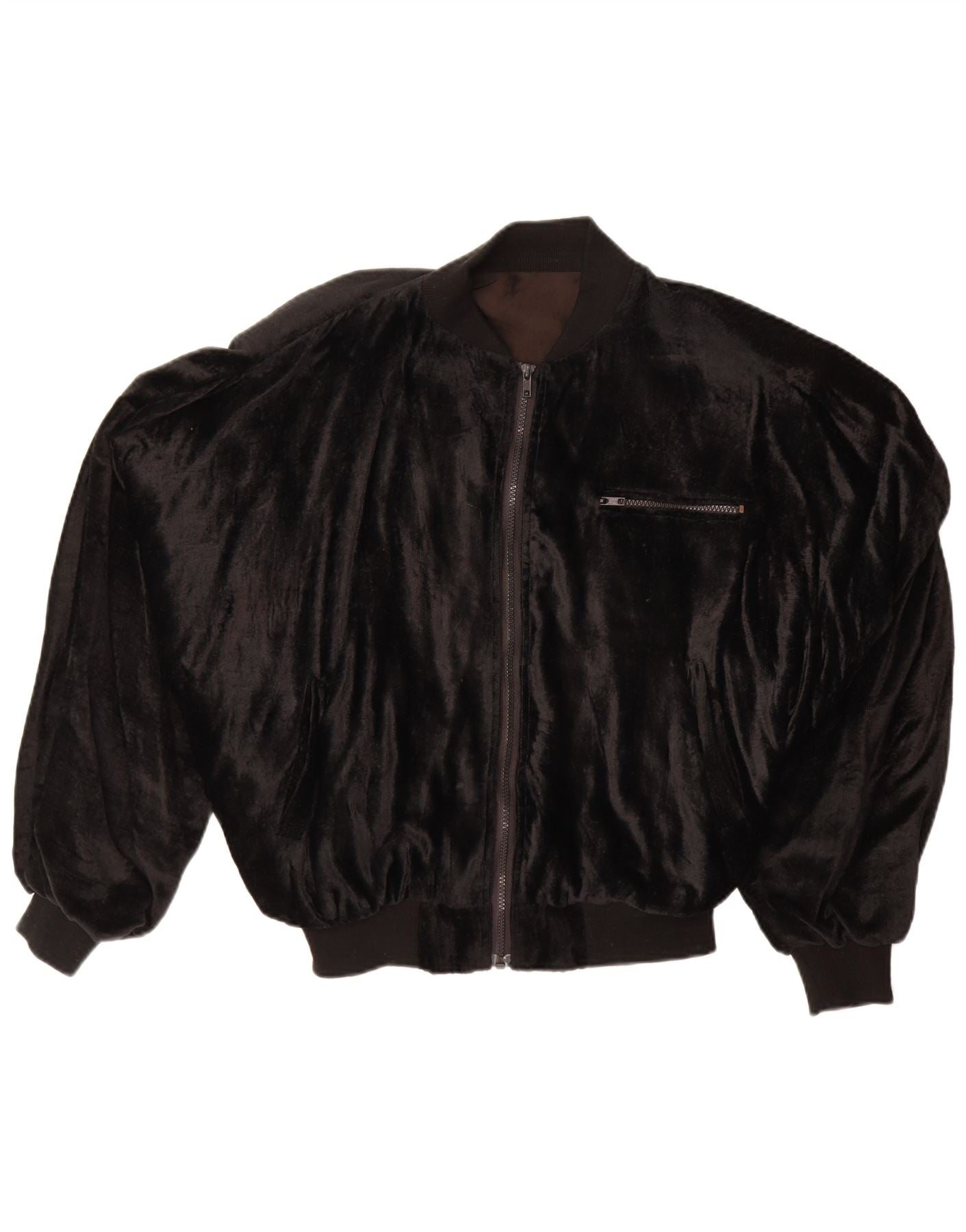 VINTAGE Γυναικείο βελούδινο μπουφάν μπόμπερ μεγάλου μεγέθους UK 14 μεσαία μαύρη βισκόζη
