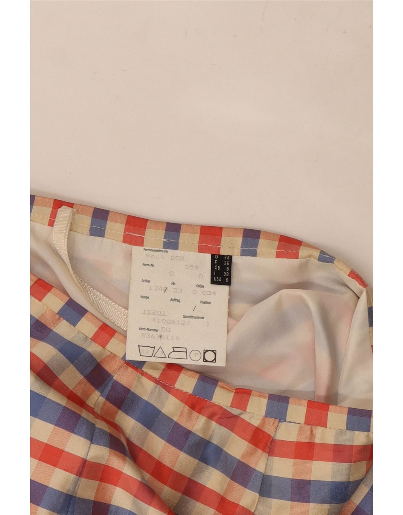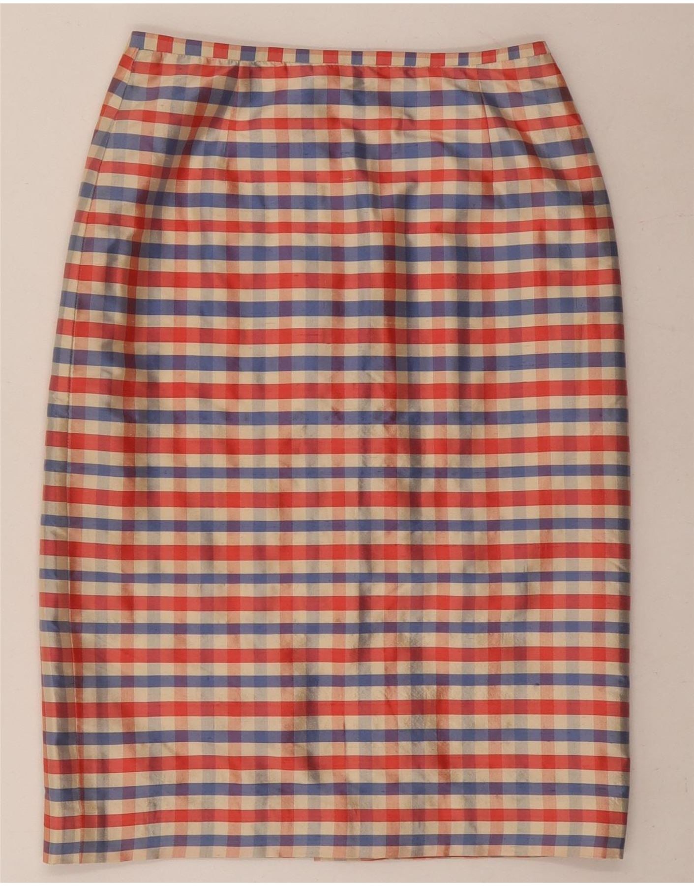 VINTAGE Γυναικεία Pencil Φούστα UK 8 Small W26 Πολύχρωμη Check Silk
