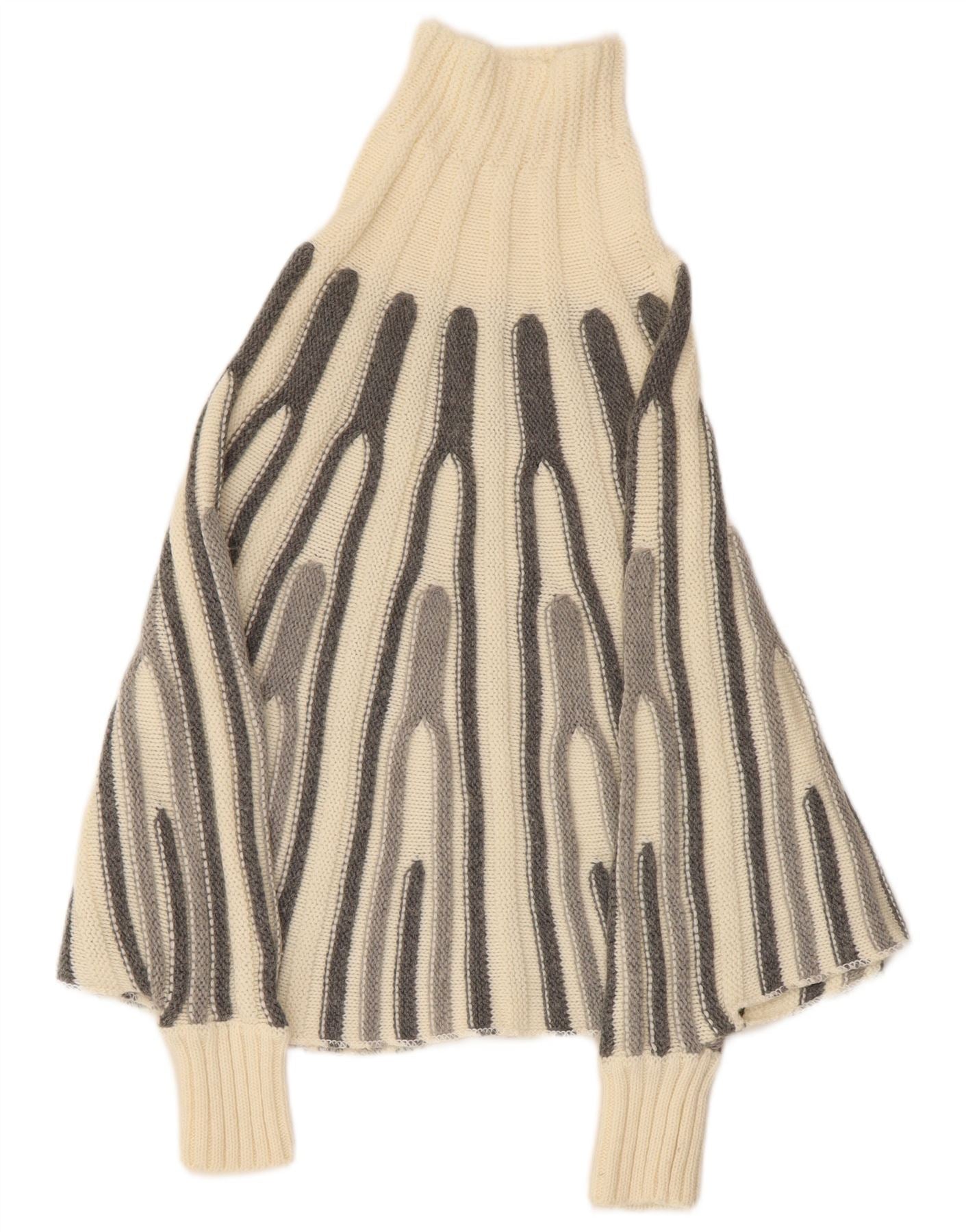 VINTAGE Γυναικείο Poncho Jumper UK 12 Medium Off White Ριγέ