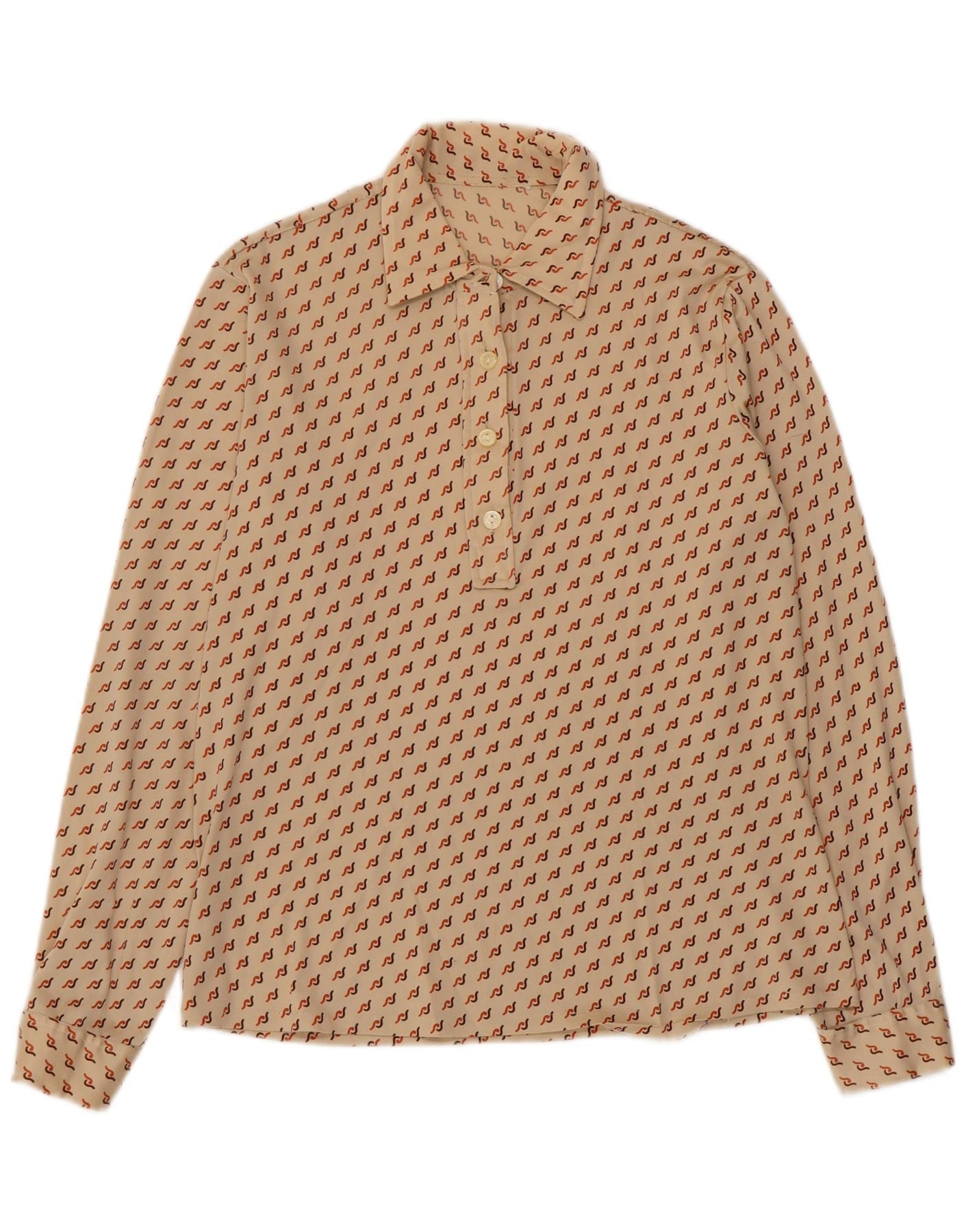 VINTAGE Γυναικείο πουλόβερ Πουκάμισο UK 16 Μεγάλο Μπεζ γεωμετρικό