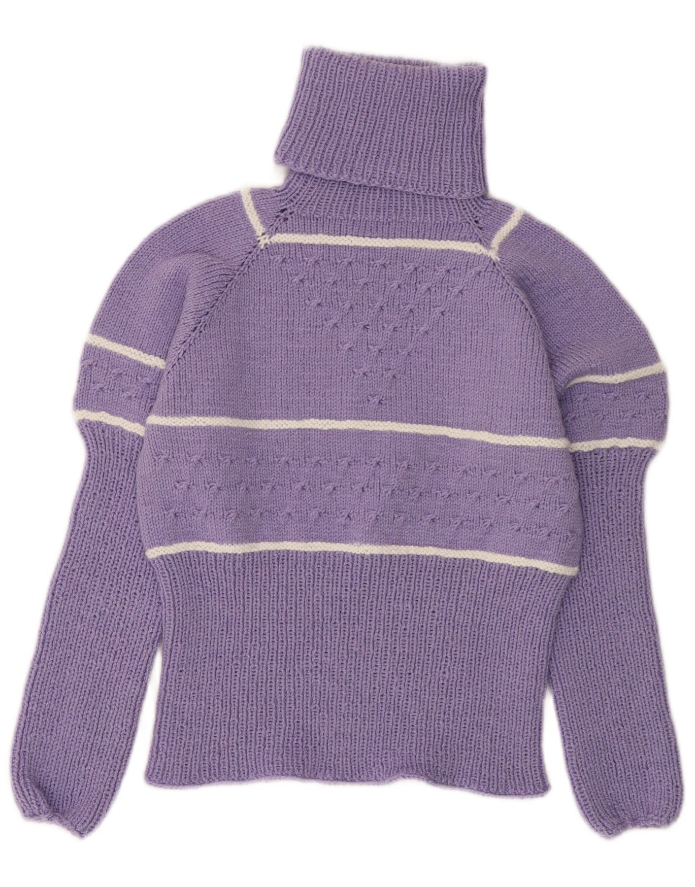 VINTAGE Γυναικείο πουλόβερ με ρολό λαιμόκοψη UK 10 Small Purple ριγέ