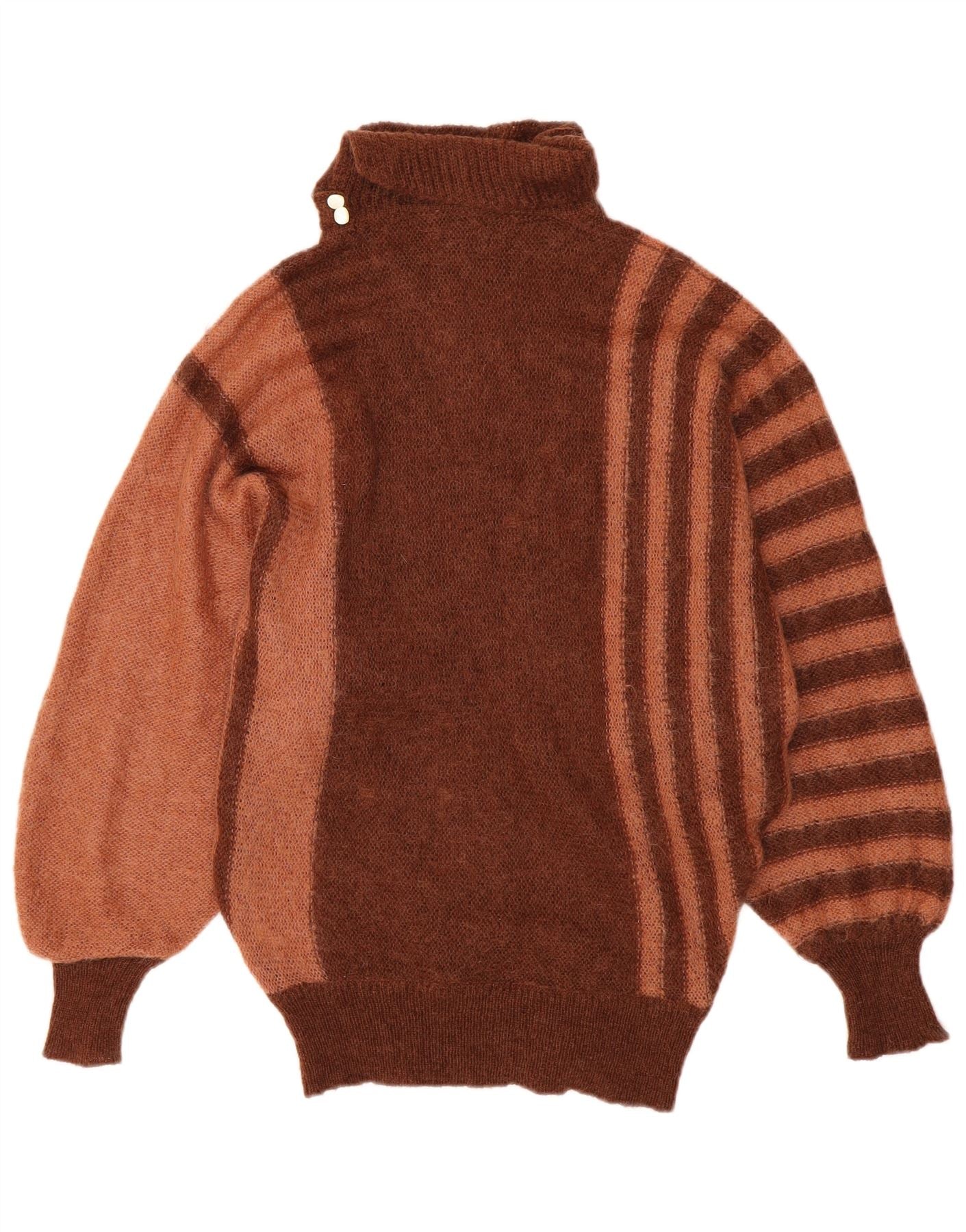 VINTAGE Γυναικείο πουλόβερ με ρολό λαιμόκοψη UK 14 Μεγάλο καφέ ριγέ μοχέρ