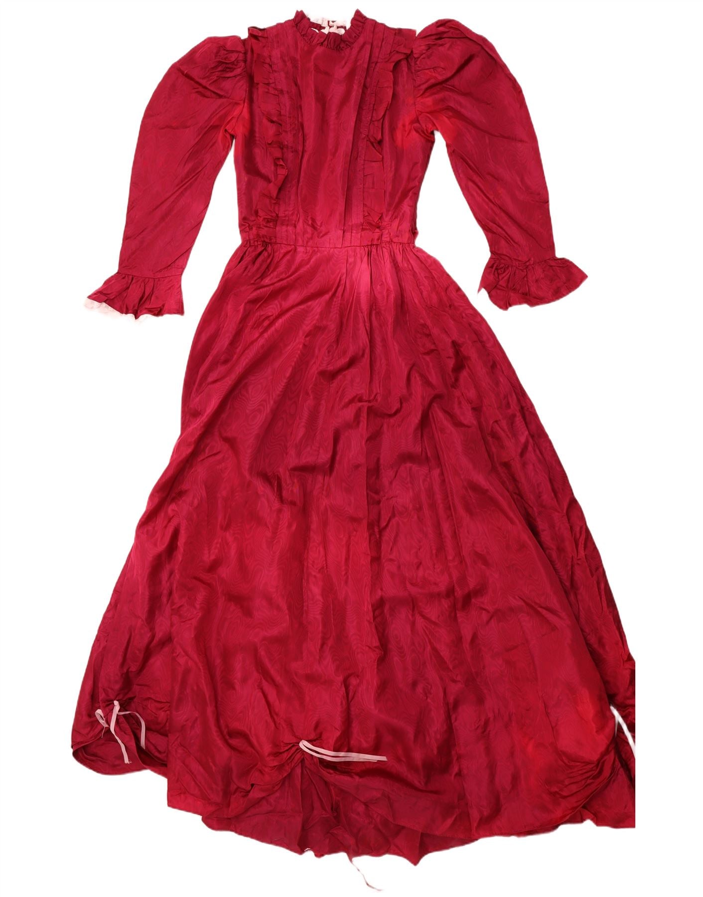 VINTAGE Γυναικείο βολάν Μπροστά Πριγκίπισσα Φόρεμα UK 10 Small μπορντό