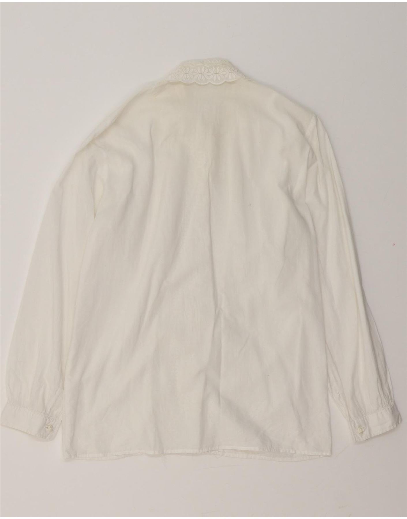 VINTAGE Γυναικείο πουκάμισο με βολάν μπλούζα UK 14 Medium White Floral
