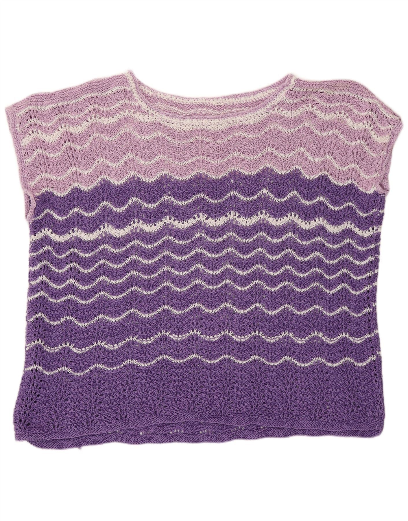 VINTAGE Γυναικεία See Through Vest Tank Top UK 20 2XL Purple Colourblock
