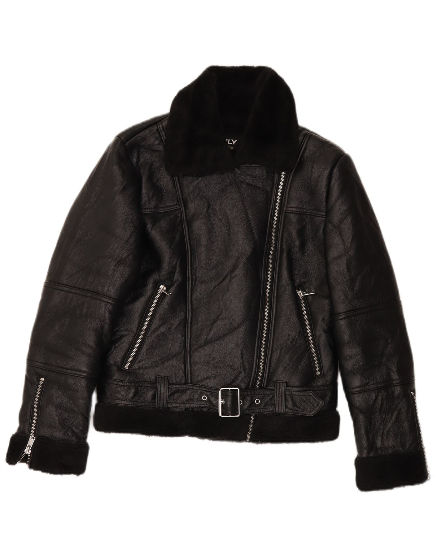 VINTAGE Γυναικείο Sherpa Faux Leather Biker Jacket UK 10 Small Black