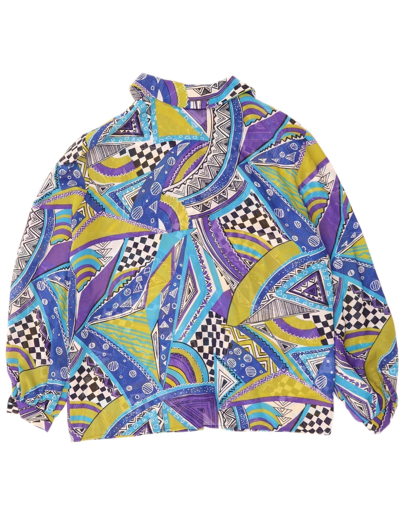 VINTAGE Γυναικείο Πουκάμισο Μπλούζα IT 42 Μεσαίο Μπλε Γεωμετρικός Πολυεστέρας
