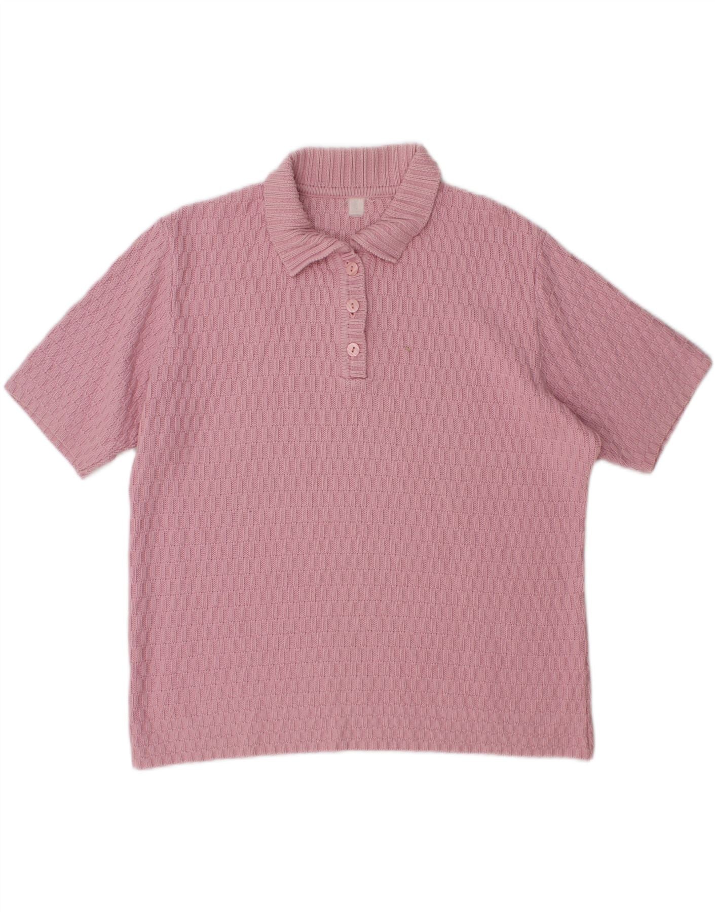 VINTAGE Womens Short Sleeve Polo Neck Jumper Sweater UK 14 Large Pink