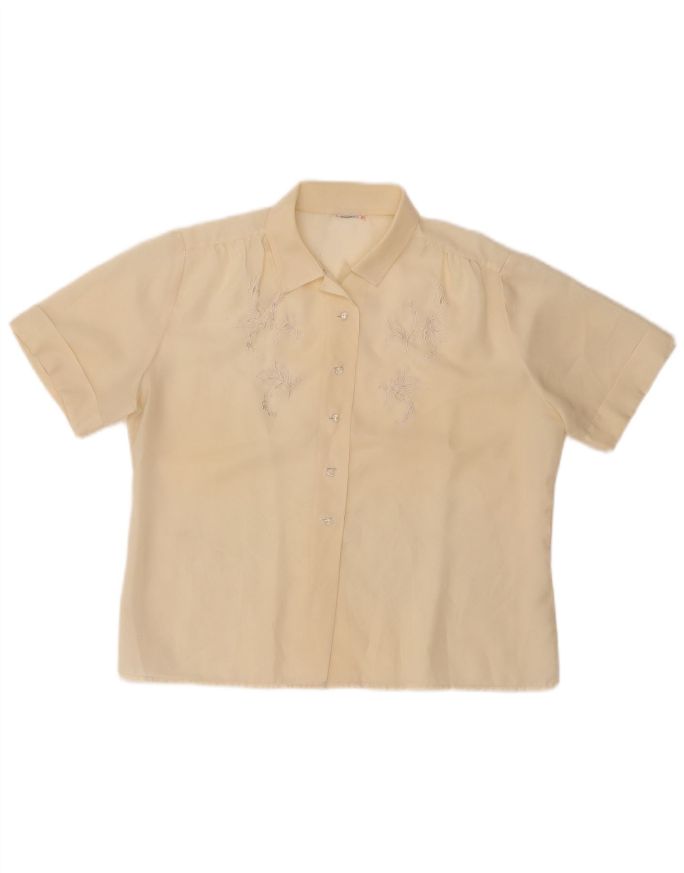 VINTAGE Γυναικείο κοντομάνικο πουκάμισο Μπλούζα UK 14 Medium Yellow Floral