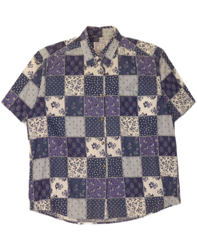VINTAGE Γυναικείο κοντομάνικο πουκάμισο UK 20 2XL Μπλε συνονθύλευμα βαμβακερό