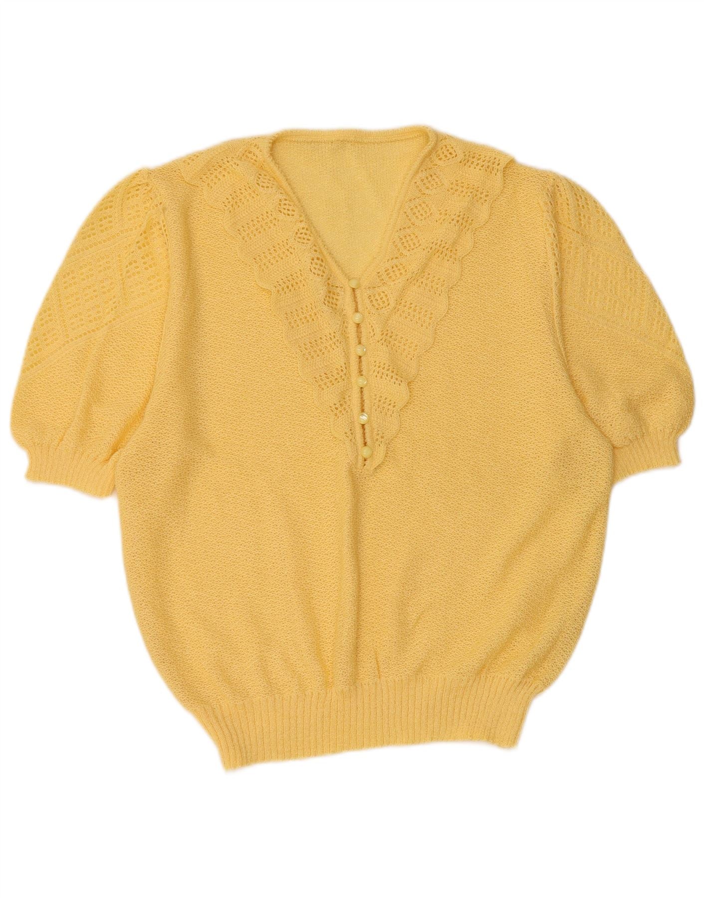 VINTAGE Γυναικείο πουλόβερ με κοντό μανίκι V λαιμόκοψη UK 16 μεγάλο κίτρινο