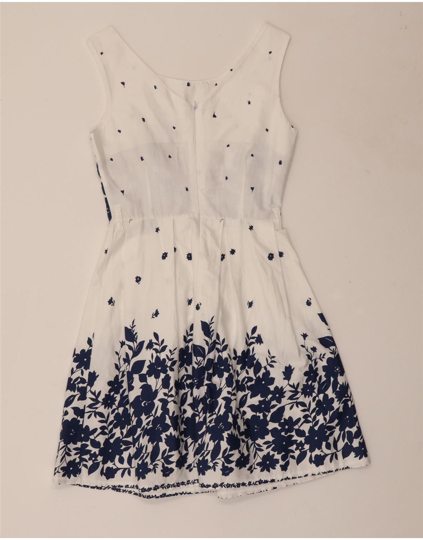 VINTAGE Γυναικείο Αμάνικο Φόρεμα UK 8 Small White Floral Βαμβακερό