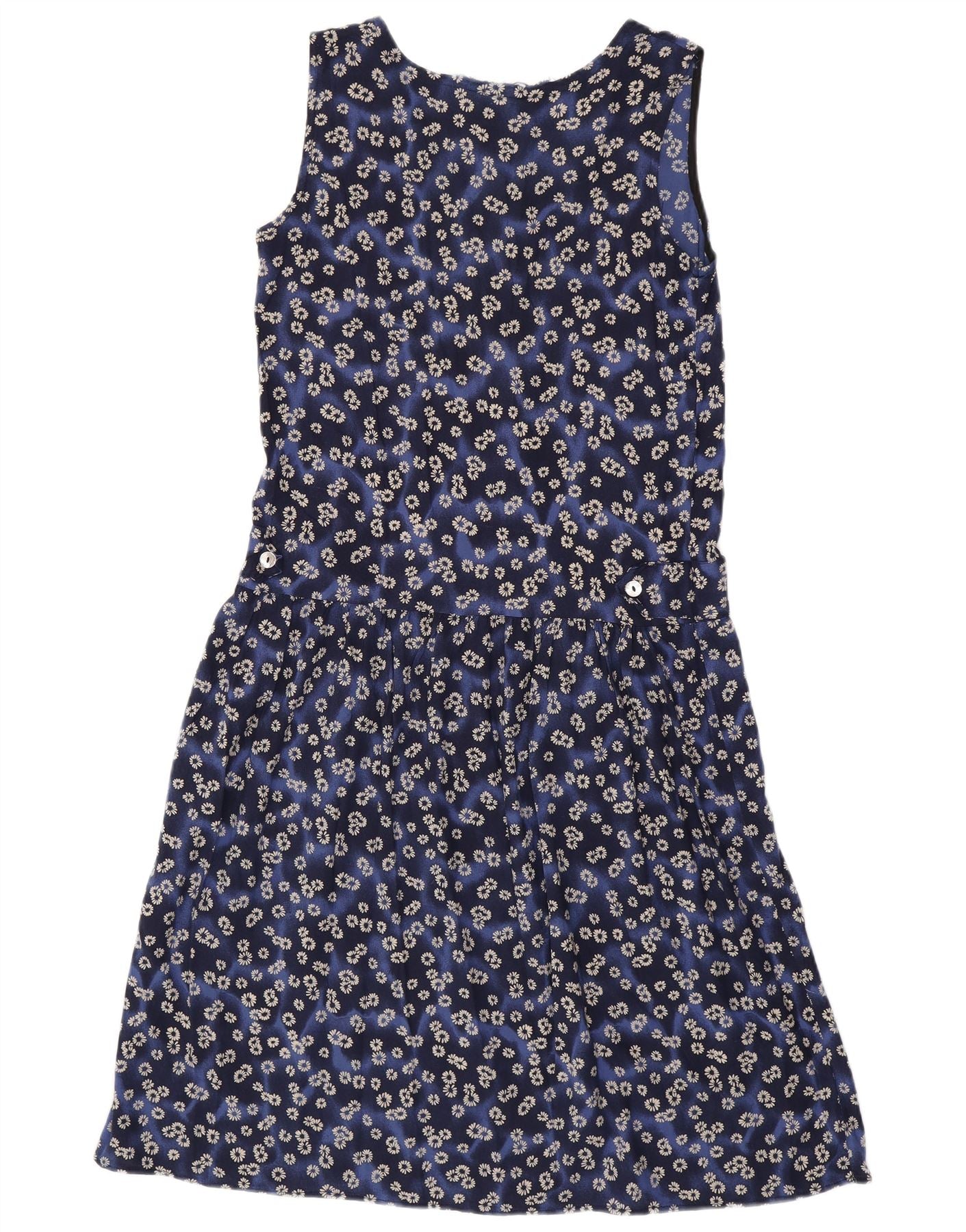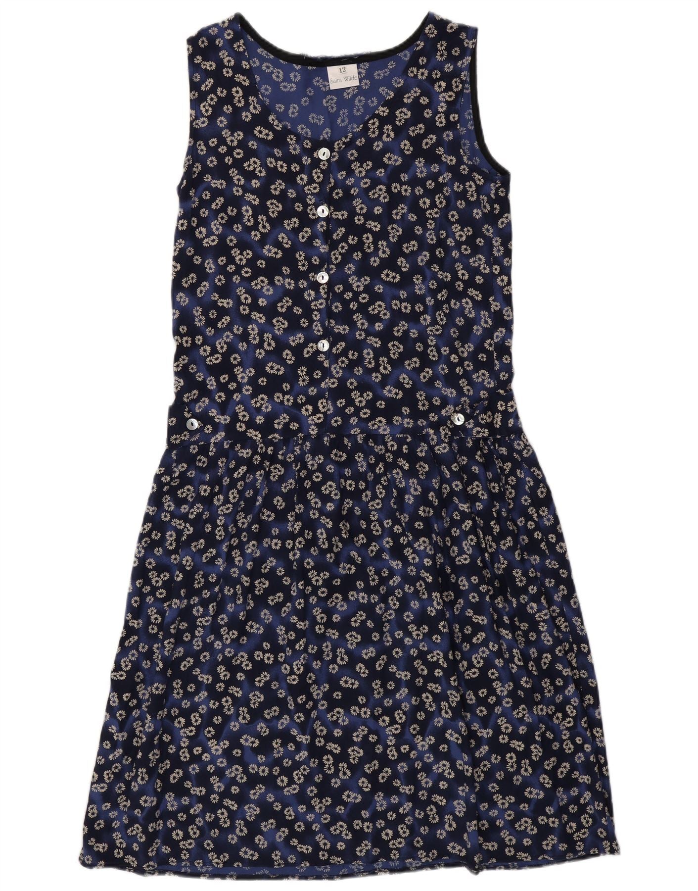VINTAGE Γυναικείο Αμάνικο Βασικό Φόρεμα UK 12 Medium Blue Floral Viscose