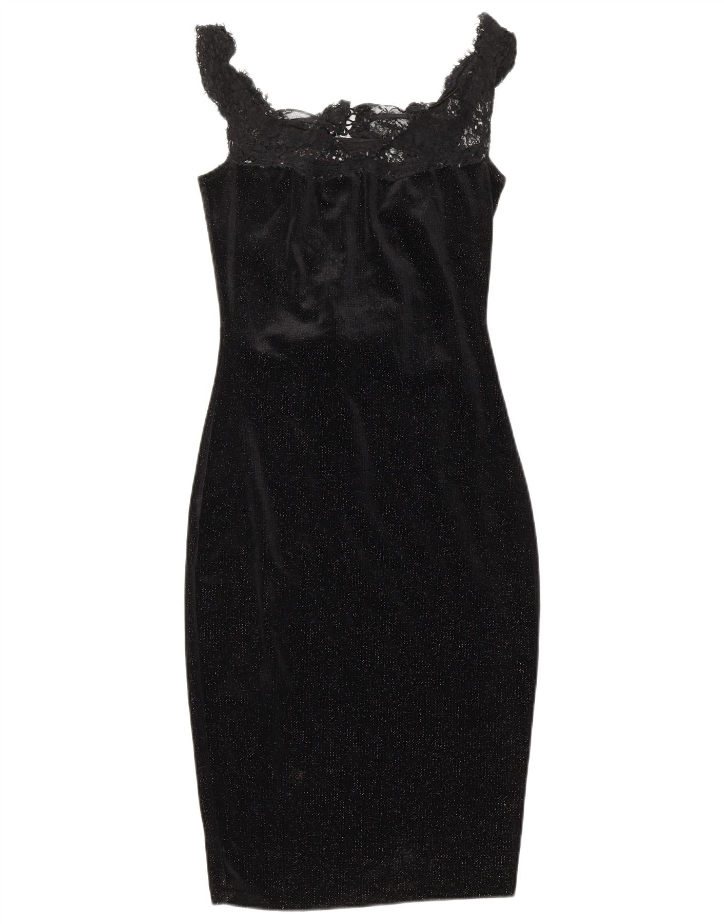 VINTAGE Γυναικείο Αμάνικο Bodycon Φόρεμα UK 4 XS Μαύρο Flecked