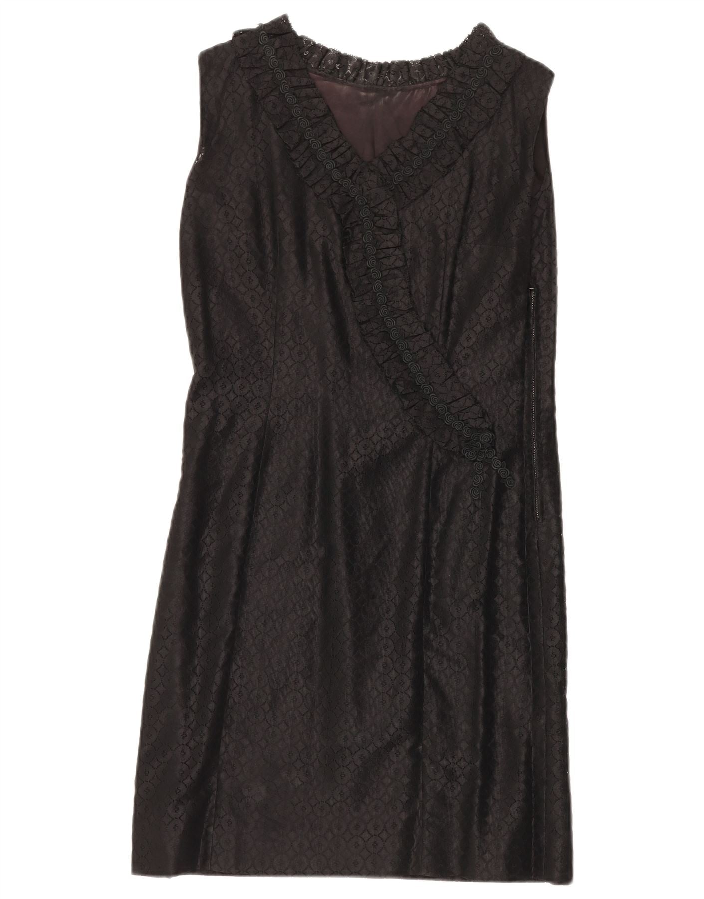 VINTAGE Γυναικείο Αμάνικο Lace Shift φόρεμα UK 12 Medium Black Floral
