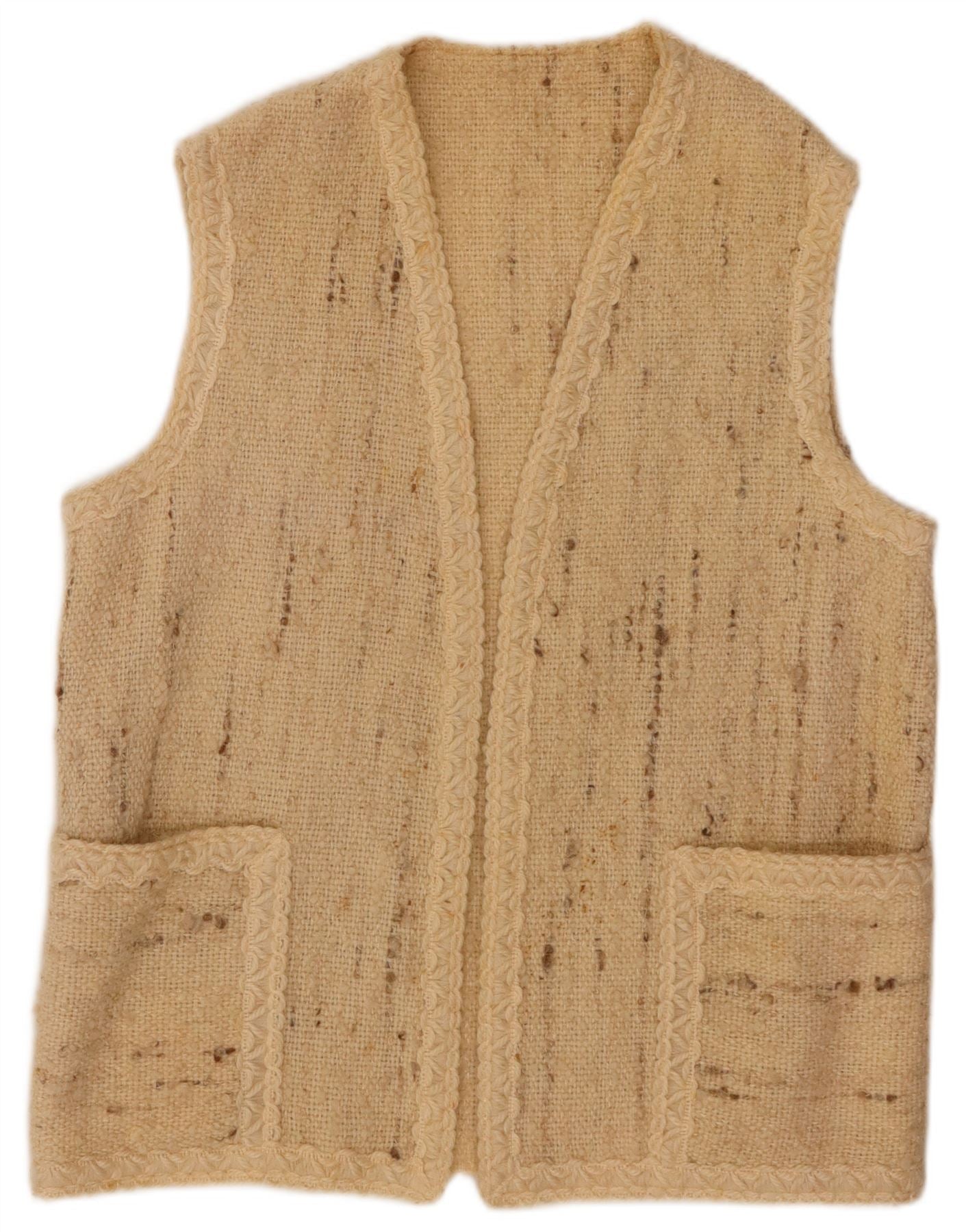 VINTAGE Γυναικείο αμάνικο ανοιχτό πουλόβερ ζακέτα UK 16 Μεγάλο μπεζ φλεκ